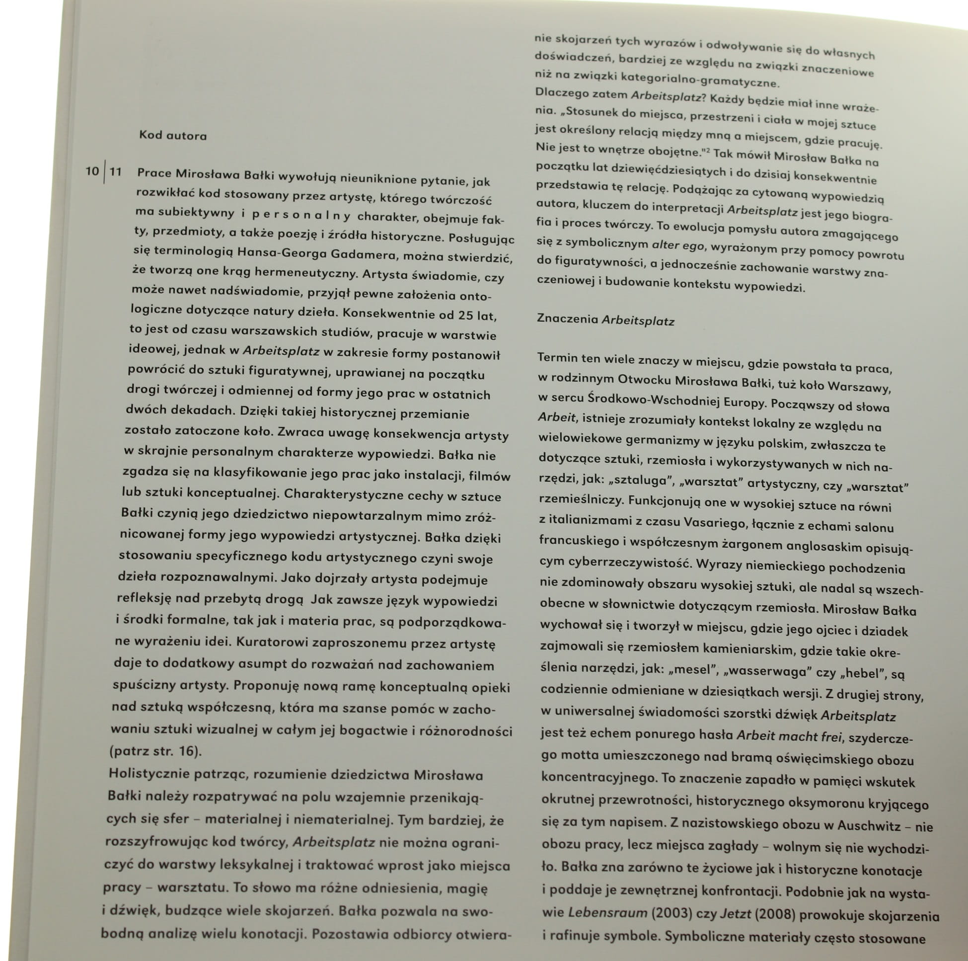 Arbeitsplatz Mirosław Bałka Tekst Iwona Szmelter [Tłum. Piotr Szymor] (2011)