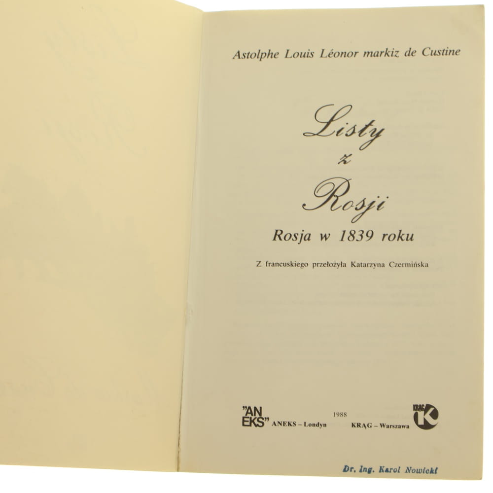 tytuł Listy z Rosji Rosja w 1839 roku