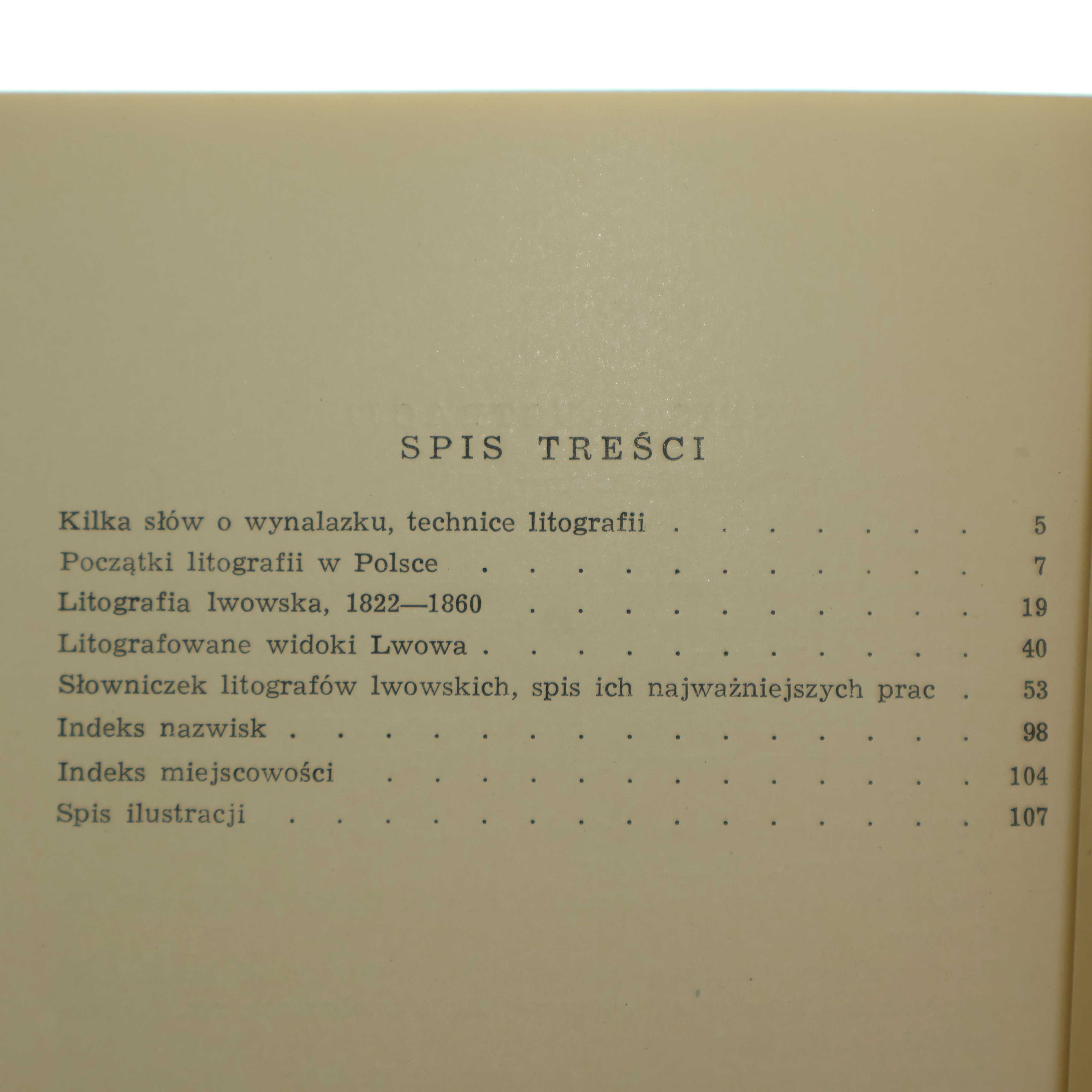 20 str. tablic z ilustr. TREŚĆ: Kilka słów o wynalazku, technice litografii / Początki litografii w Polsce / Litografia lwowska, 1822-1860 / Litografowane widoki Lwowa