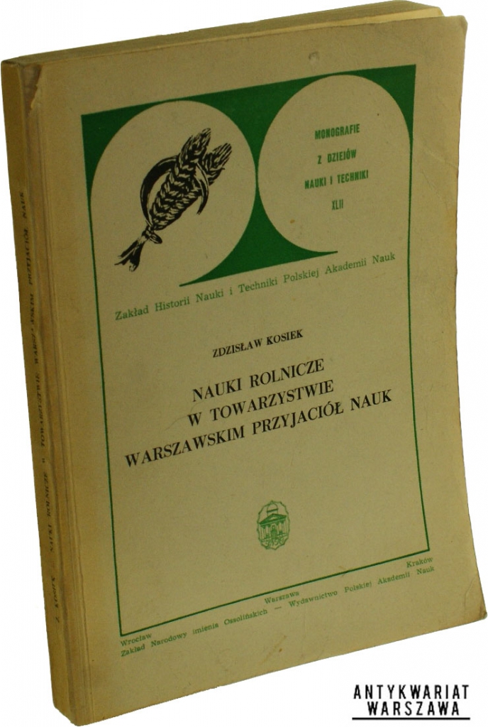 Nauki rolnicze w Towarzystwie Warszawskim Przyjaciół Nauk Kosiek Zdzisław (Seria Monografie z Dziejów Nauki i Techniki)