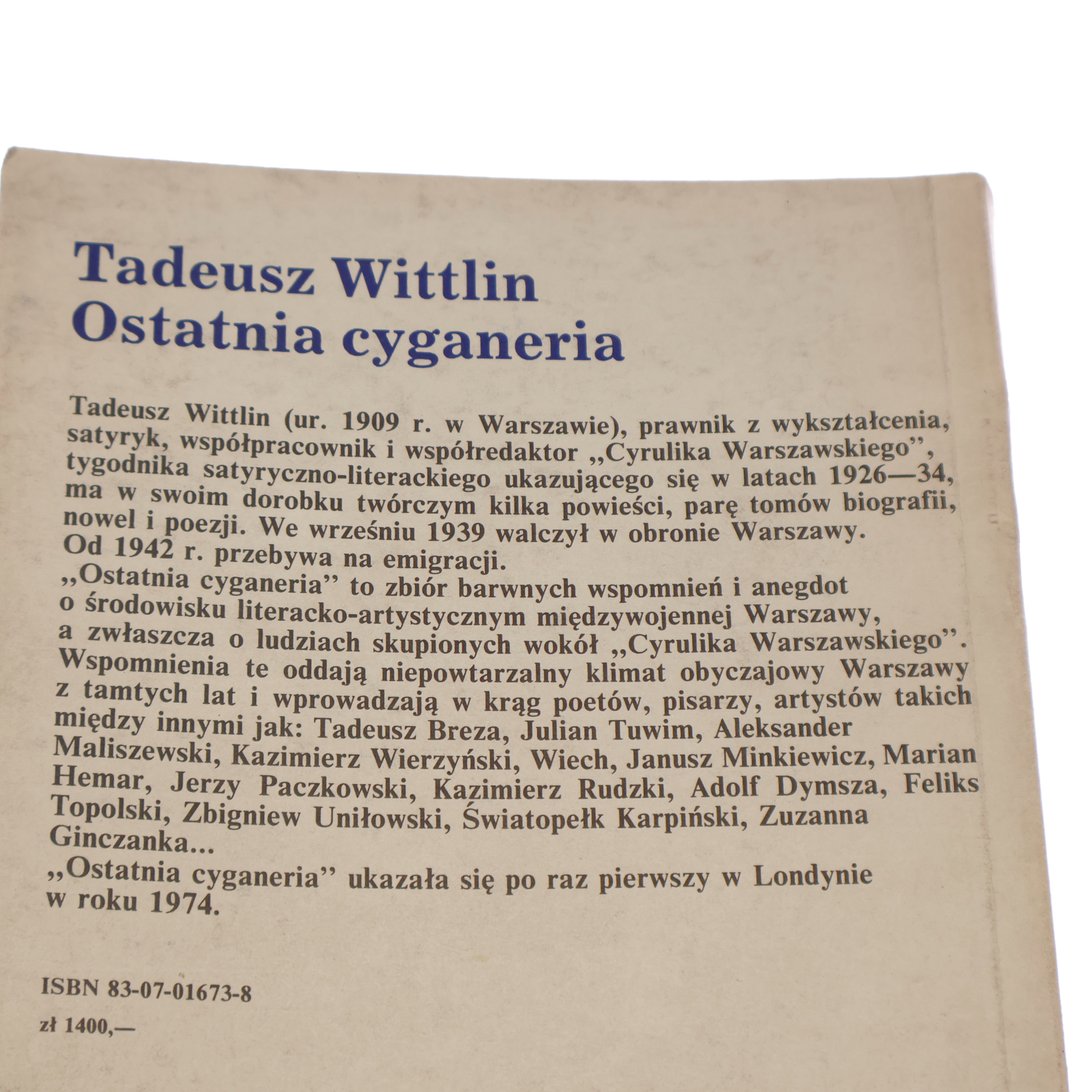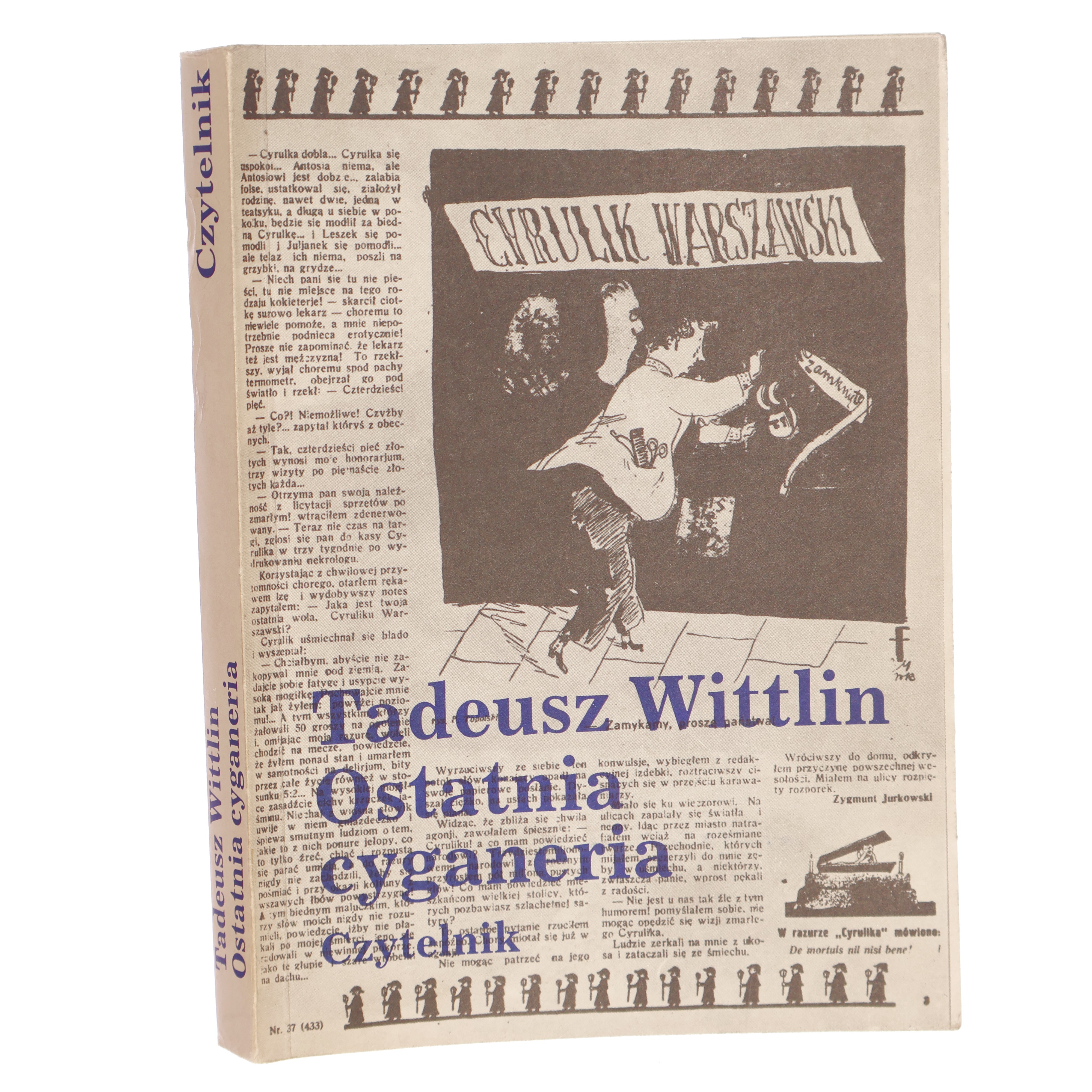 Książka opowiada o środowisku wokół Cyrulika Warszawskiego. Warszawa międzywojenna, klimat Ziemiańskiej, postaci Tuwima, Wieniawy-Długoszowskiego, Słonimskiego, Paczkowskiego i innych.
