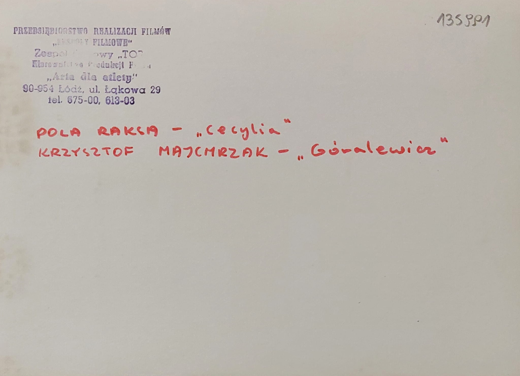 sygnatury / pieczęcie: Pieczęć na rewersie zesp. filmowych "Tor". Opis flamastrem.