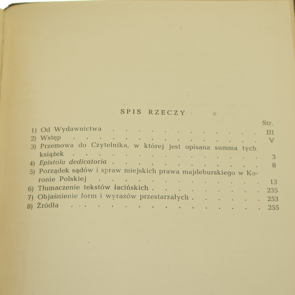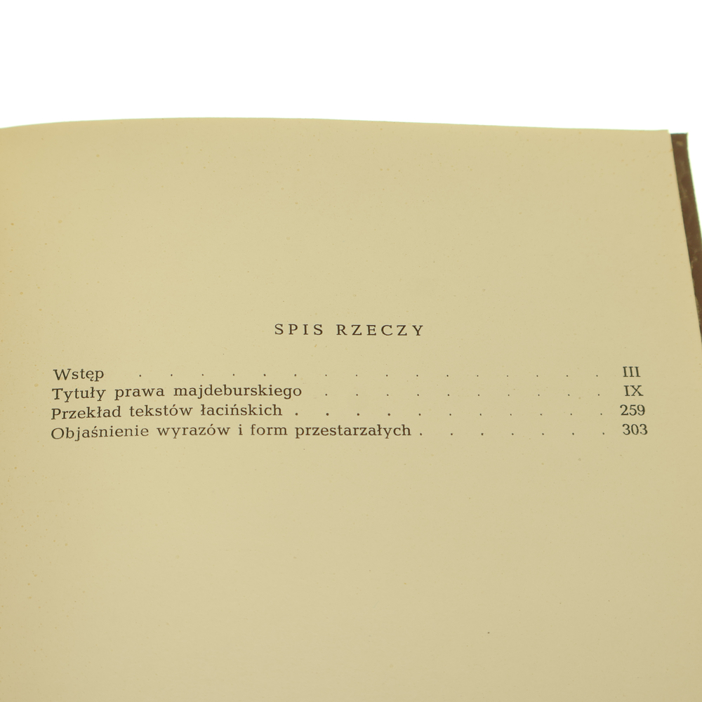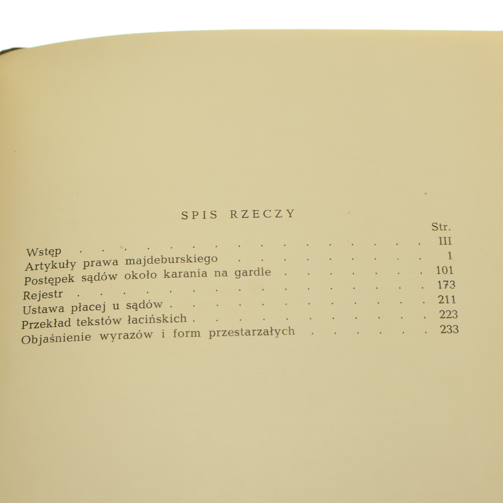 Tytuły: Porządek sądów i spraw miejskich prawa majdeburskiego w Koronie Polskiej, Artykuły prawa majdeburskiego, Postępek sądów około karania na gardle, Ustawa płacej u sądów, Tytuły prawa majdeburskiego, Obrona sierot i wdów