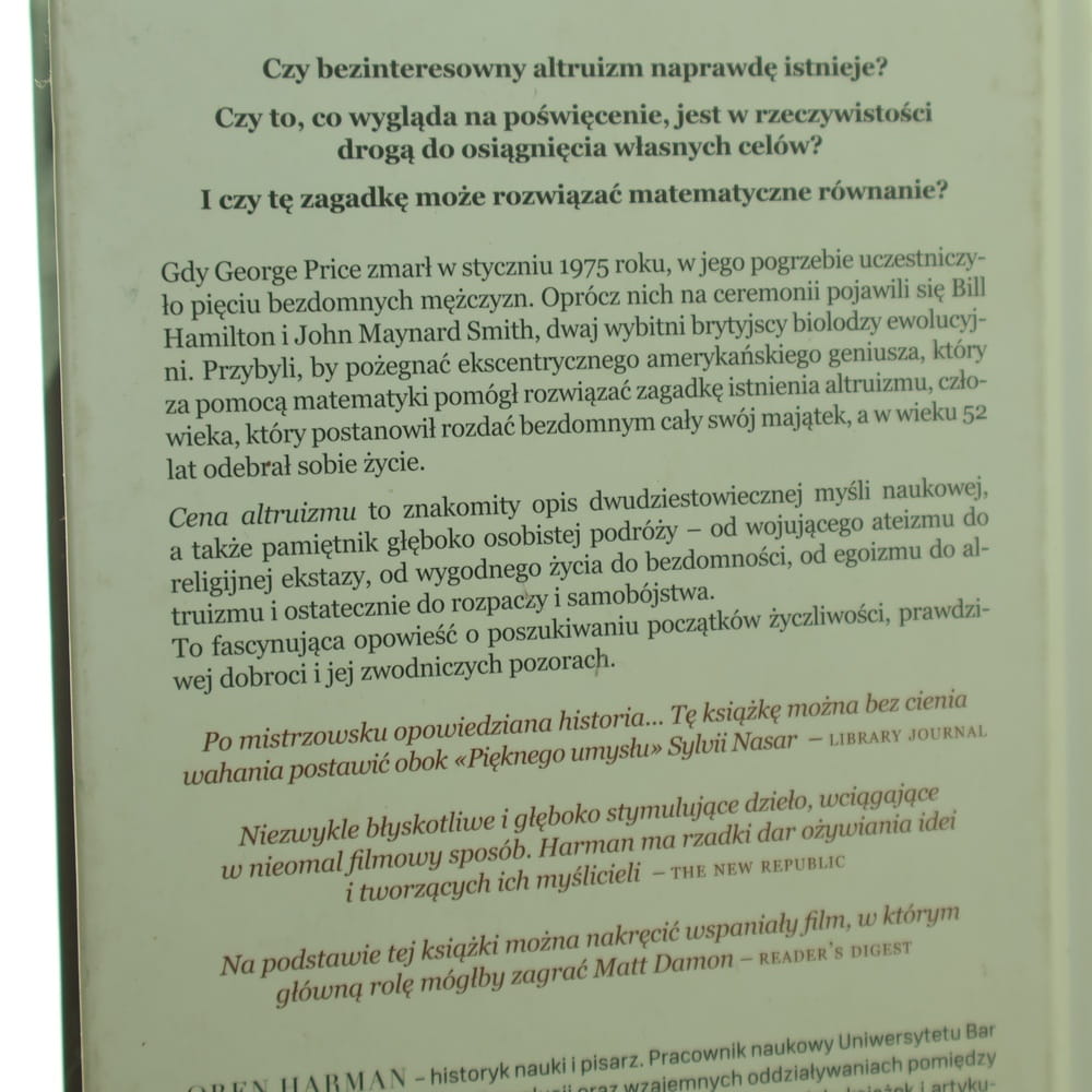 Cena altruizmu George Price i poszukiwanie źródeł moralności Oren Harman tłumaczenie Tomasz Lanczewski [1995]