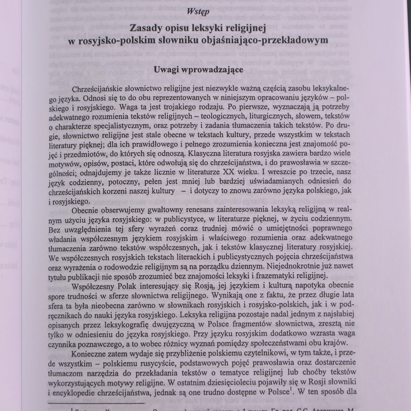 Chrześcijańskie słownictwo religijne jest niezwykle ważną częścią zasobu leksykalnego języka. Odnosi się to do obu reprezentowanych w niniejszym opracowaniu języków – polskiego i rosyjskiego. Waga ta jest trojakiego rodzaju. Po pierwsze, wyznaczają ją potrzeby adekwatnego rozumienia tekstów religijnych – teologicznych, liturgicznych, słowem, tekstów o charakterze specjalistycznym, oraz potrzeby i zadania tłumaczenia takich tekstów. Po drugie, słownictwo religijne jest stale obecne w tekstach kultury, przede wszystkim w tekstach literatury pięknej; dla ich prawidłowego i pełnego zrozumienia konieczna jest znajomość pojęć i przedmiotów, do których się odnoszą. Klasyczna literatura rosyjska zawiera bardzo wiele motywów, opisów, postaci, które odwołują się do chrześcijaństwa, i do prawosławia w szczególności; odnajdujemy je także licznie w literaturze XX wieku. I wreszcie po trzecie, nasz język codzienny, potoczny, pełen jest mniej lub bardziej uświadamianych odniesień do chrześcijańskich korzeni naszej kultury – i dotyczy to znowu zarówno języka polskiego, jak i rosyjskiego.