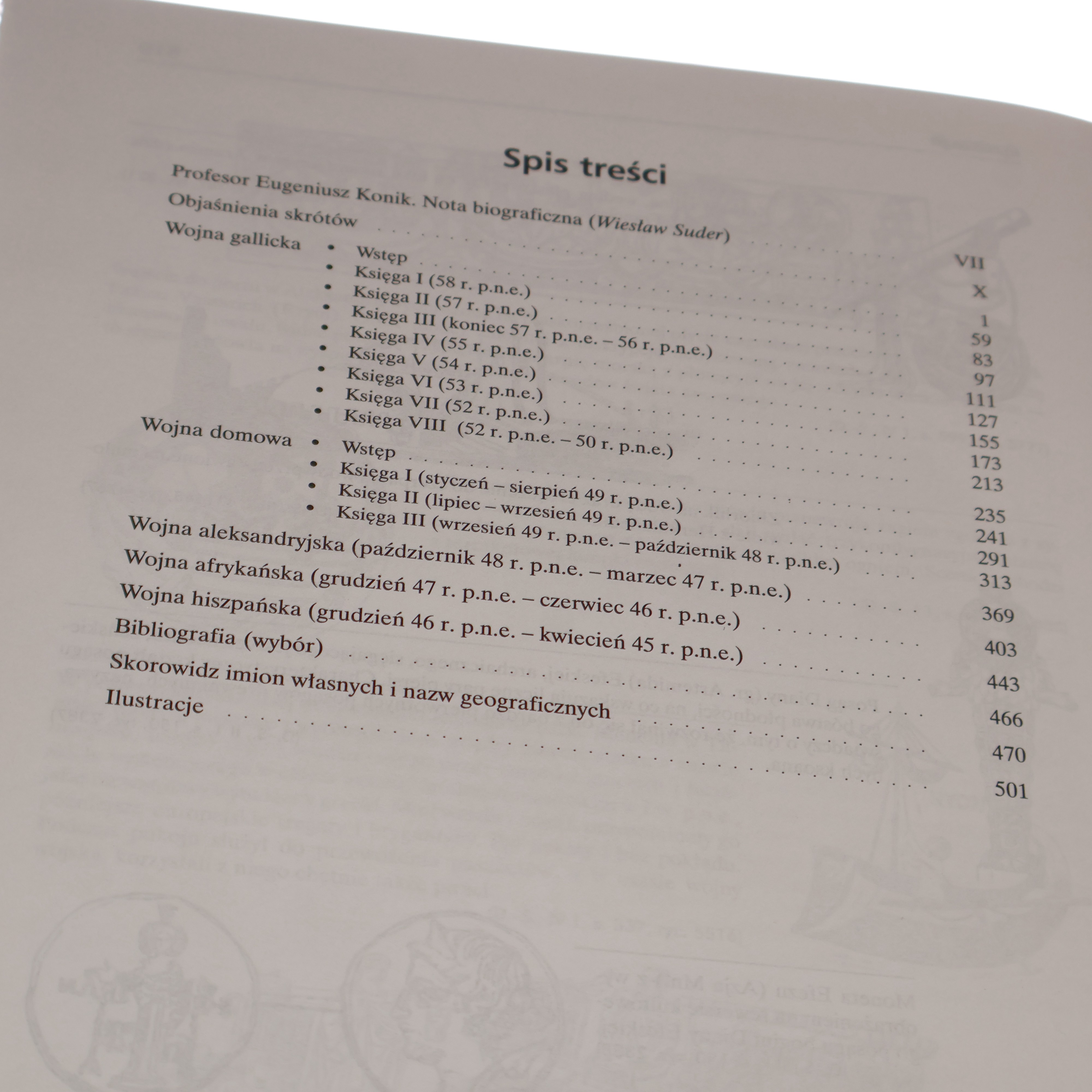Treść: Nota biograficzna E. Konik / Wojna gallicka ks. I-VIII / Wojna domowa ks. I-III / Wojna aleksandryjska / Wojna afrykańska Wojna / hiszpańska / Bibliografia / Skorowidz imion