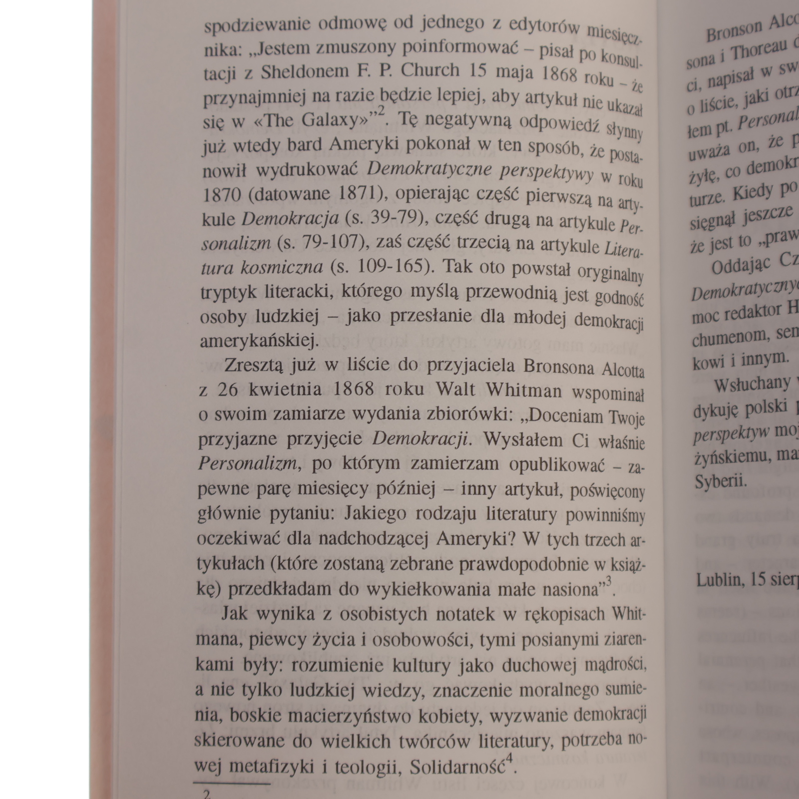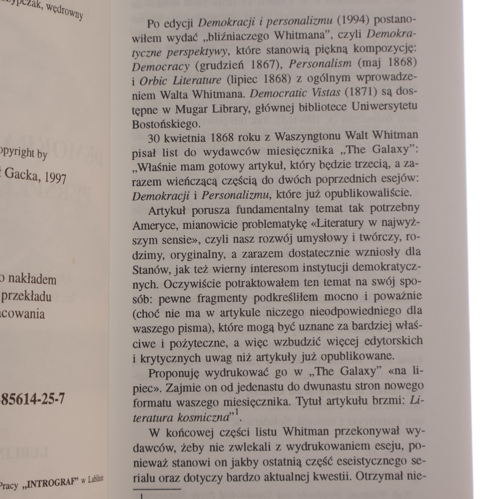 Demokratyczne perspektywy Walt Whitman przekład i opracowanie ks. Bogumił Gacka [1997]