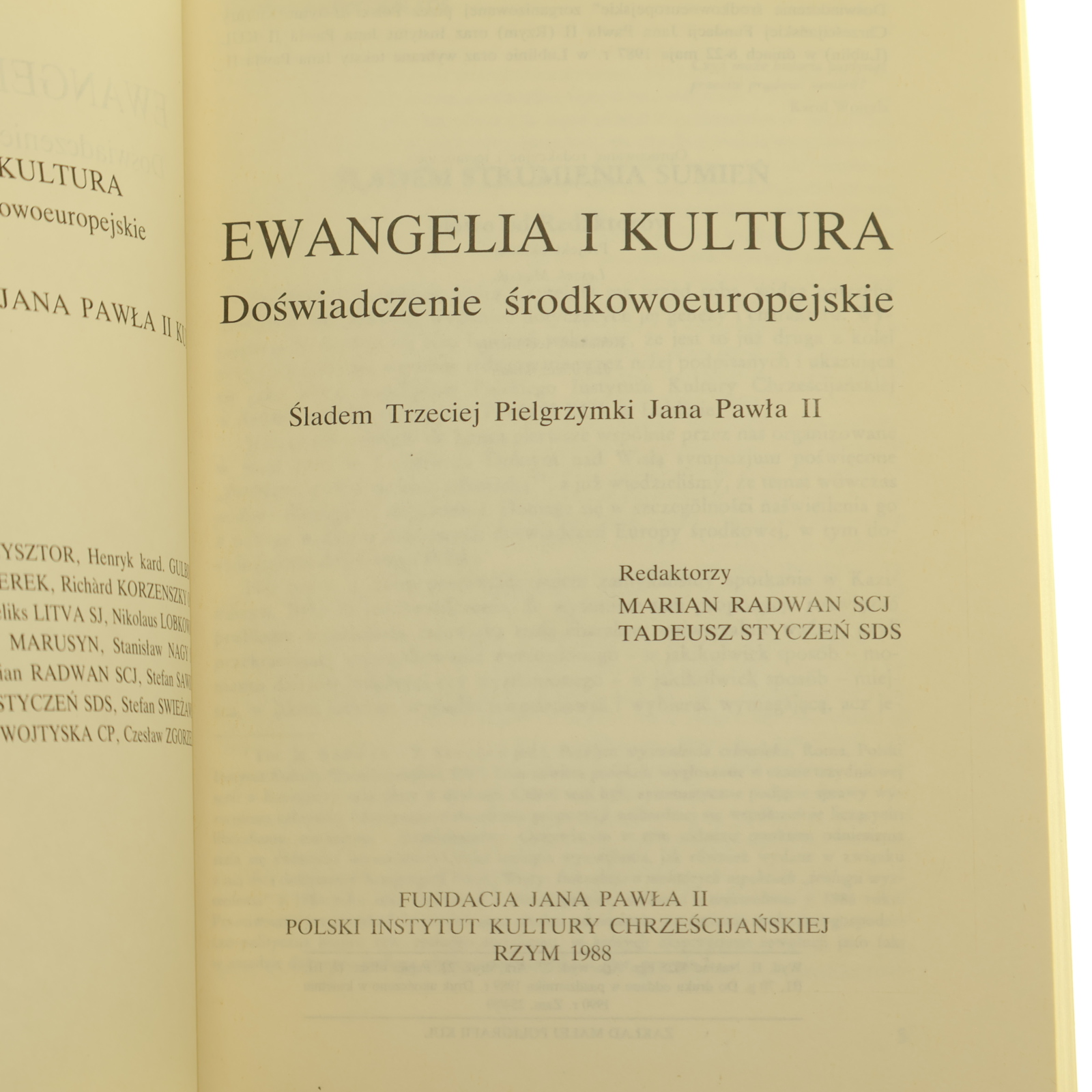 Ewangelia i kultura doświadczenie środkowo-europejskie śladem Trzeciej Pielgrzymki Jana Pawła II red. Marian Radwan, Tadeusz Styczeń [Sympozja Instytutu Jana Pawła II / 1988]