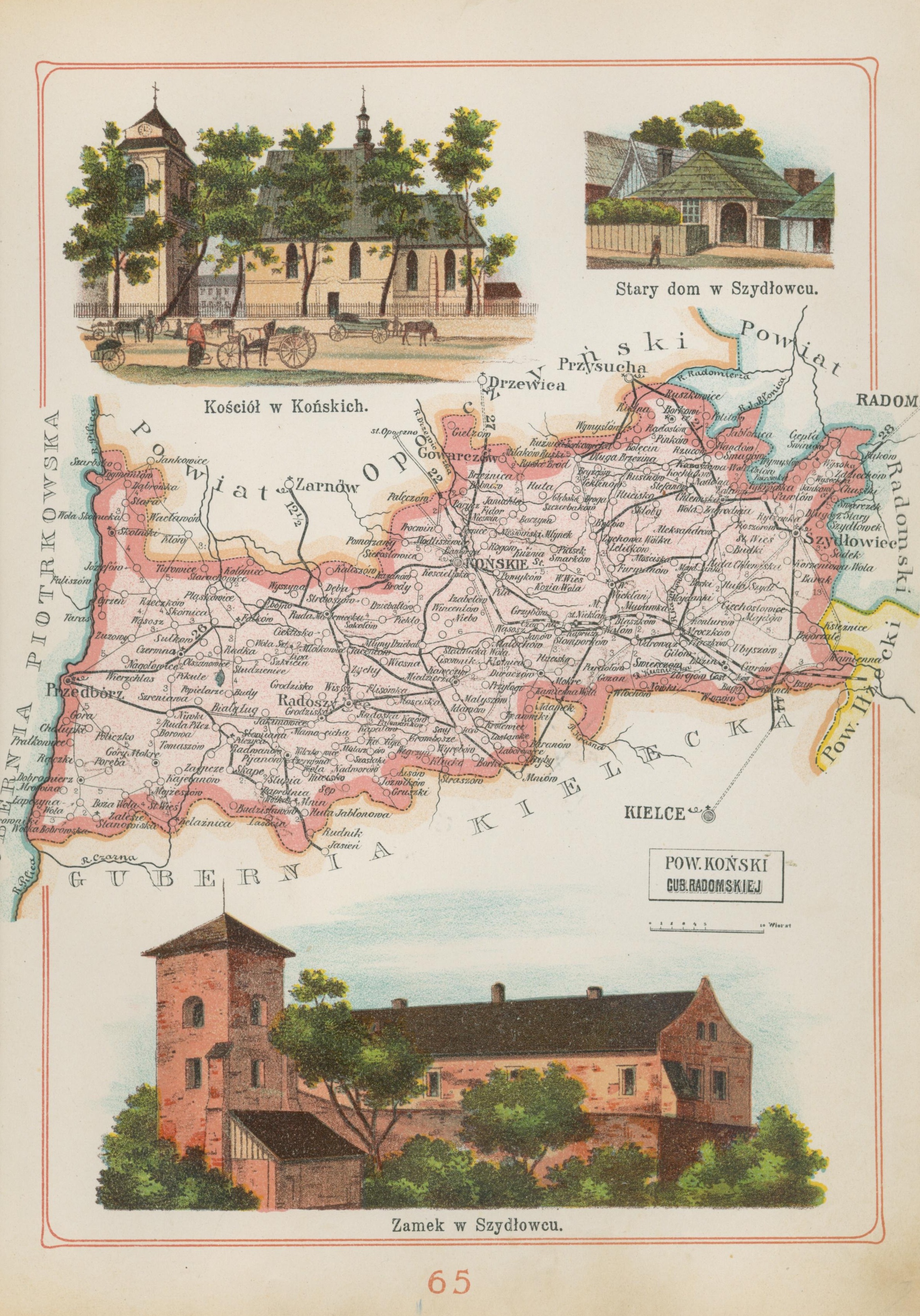 Gubernia Radomska Powiat Koński Józef Michał Bazewicz [mapa Królestwo Polskie 1907]