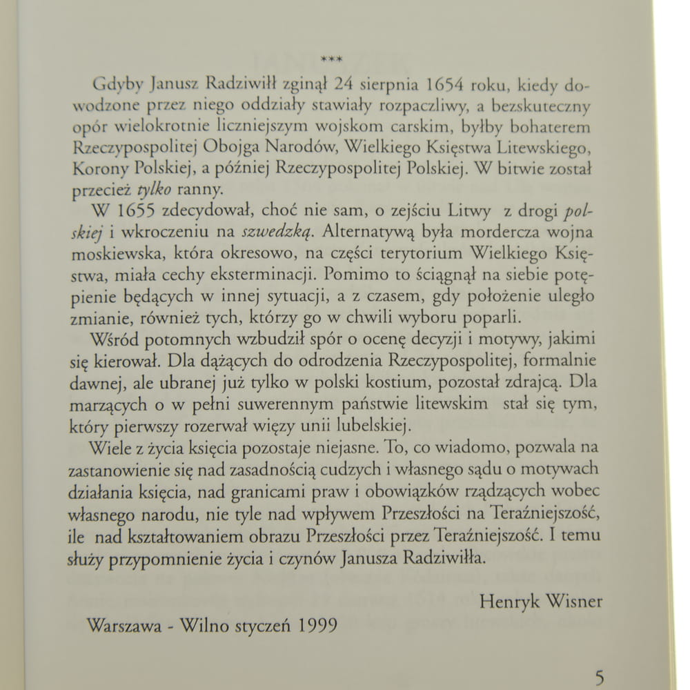Janusz Radziwiłł 1612-1655 wojewoda wileński, hetman wielki litewski Henryk Wisner [2000]