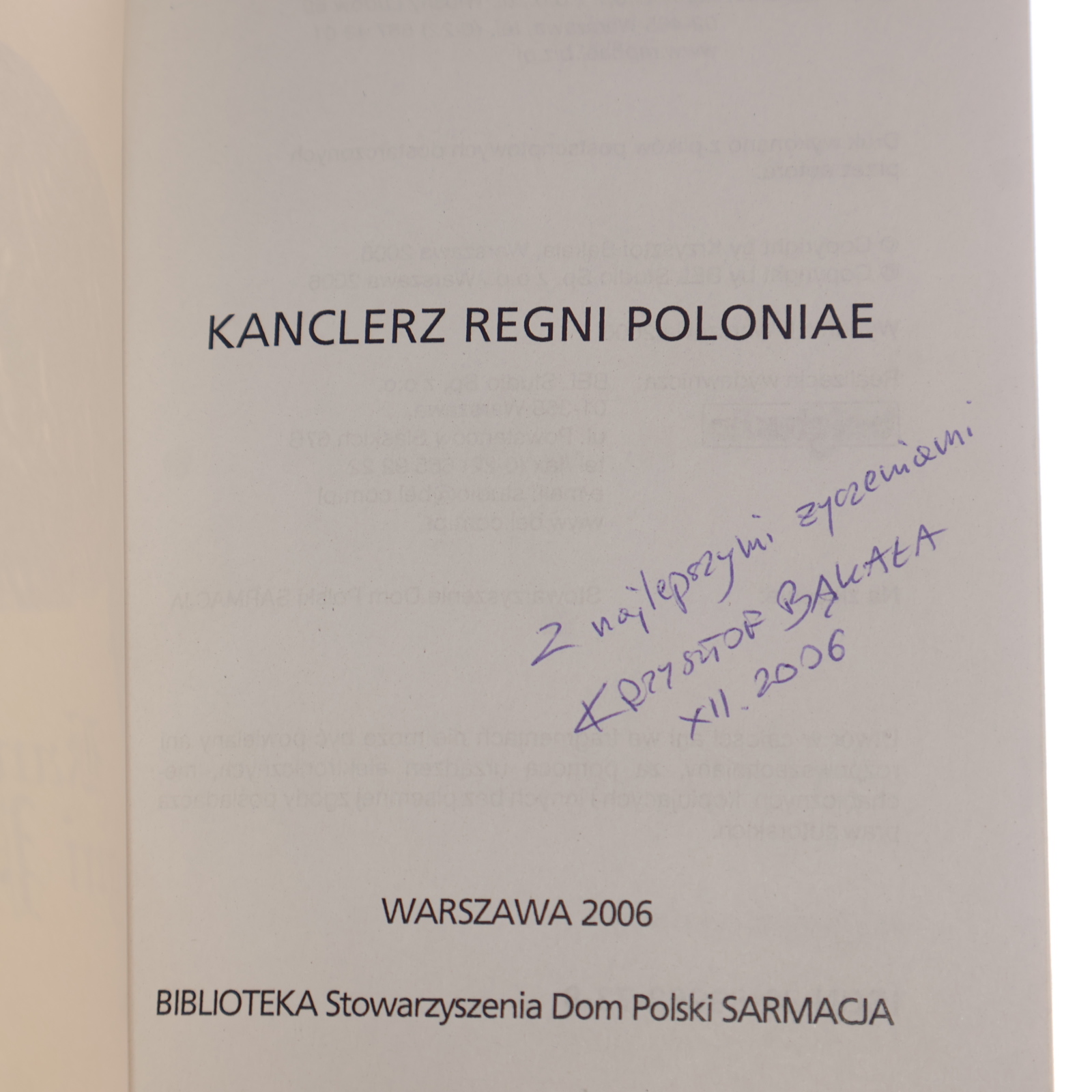 Kanclerz Regni Poloniae Krzysztof Bąkała [AUTOGRAF / 2006]