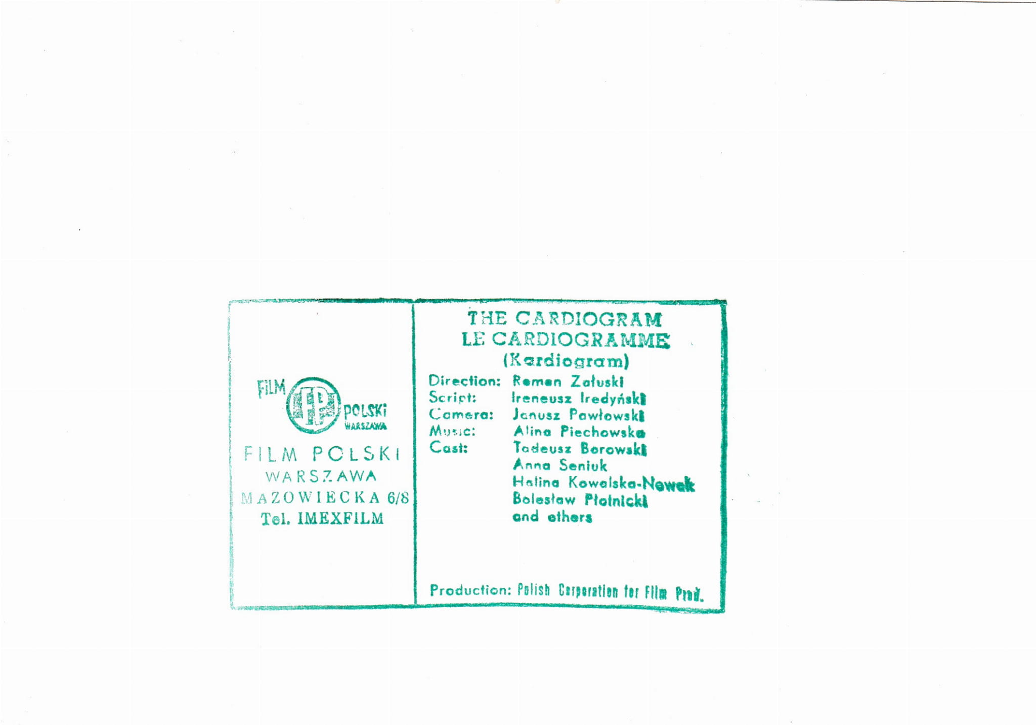 Kardiogram reż. Roman Załuski [fotografia filmowa / ca 1971]