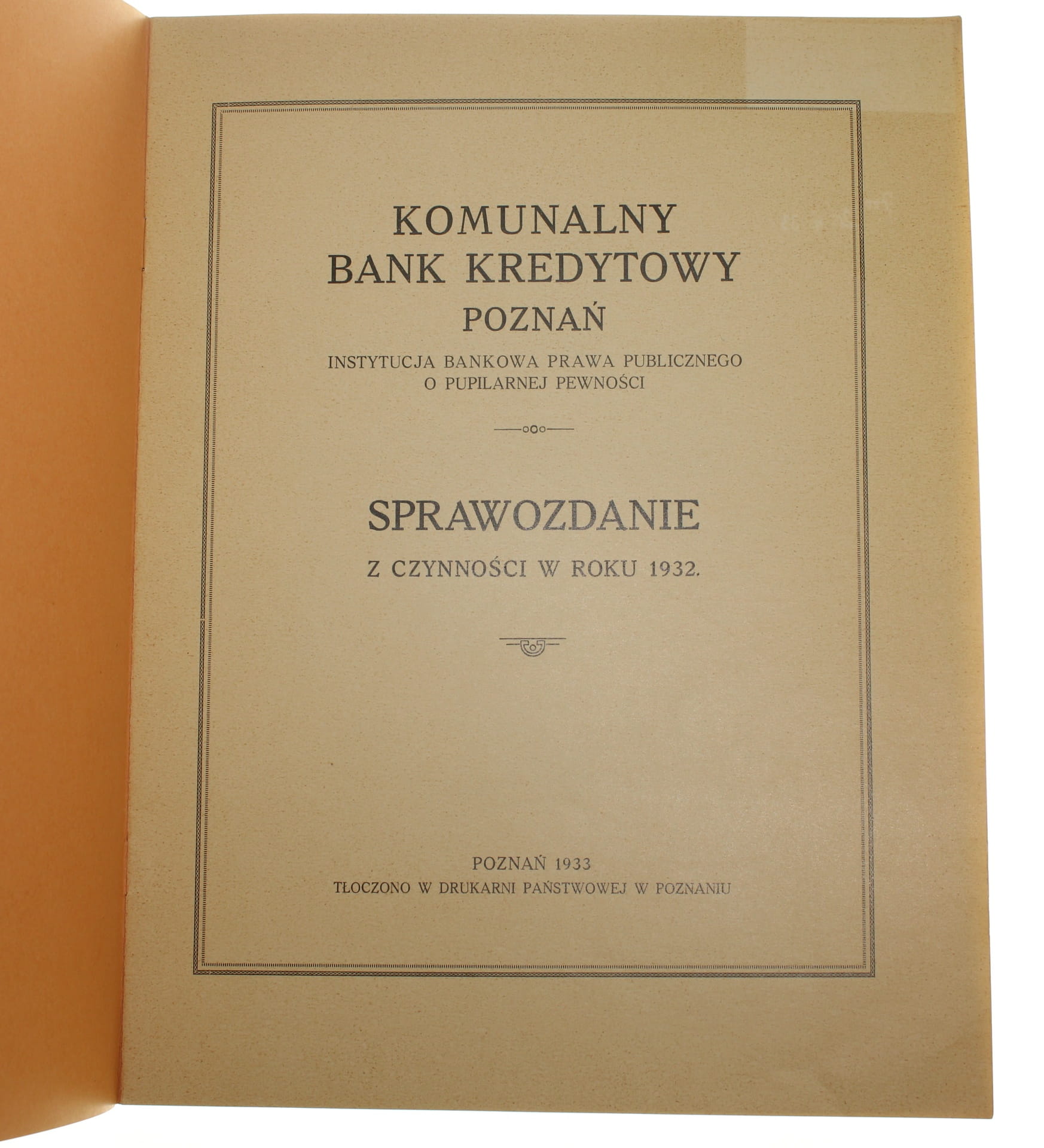 tytuł Komunalny Bank Kredytowy Poznań Sprawozdanie z czynności w roku 1932