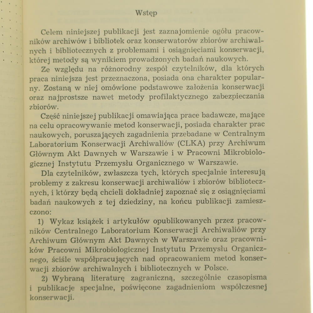 tytuł Konserwacja zbiorów archiwalnych i bibliotecznych