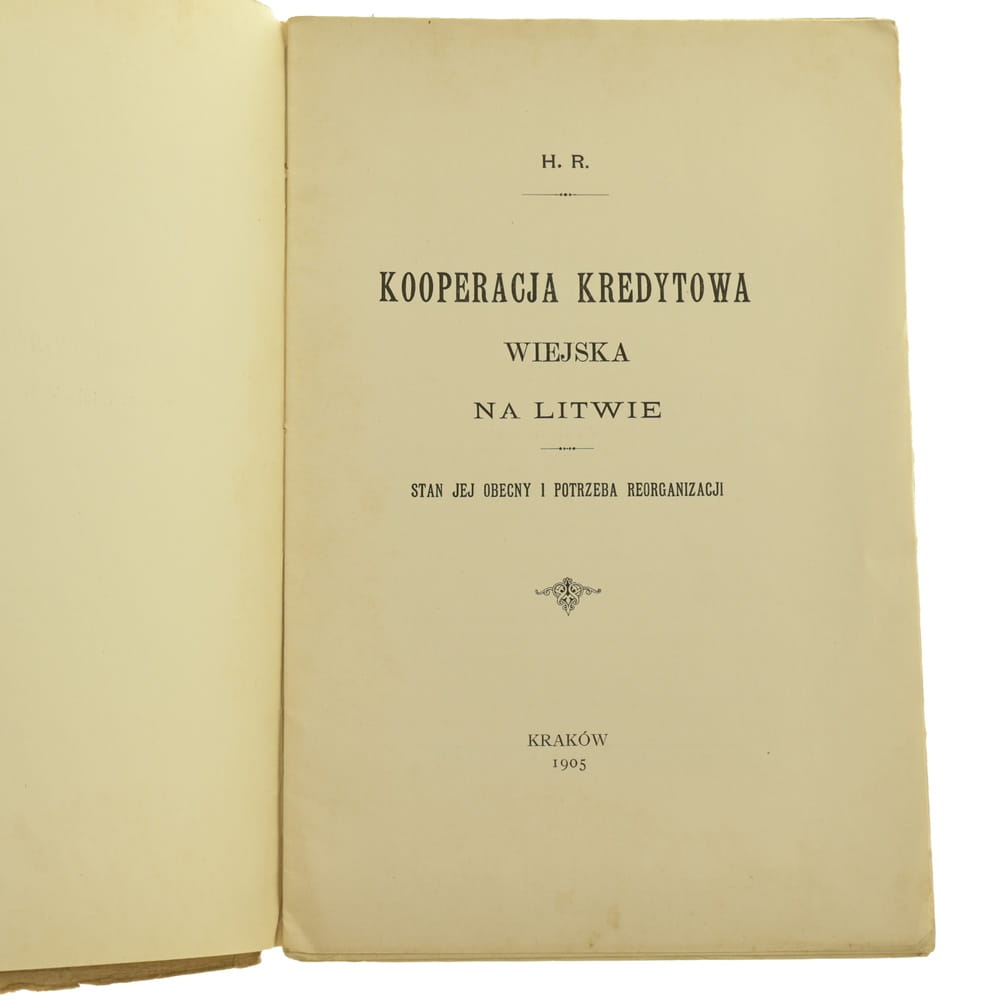 Kooperacja kredytowa wiejska na Litwie Stan jej obecny i potrzeba reorganizacji H. R. [1905]