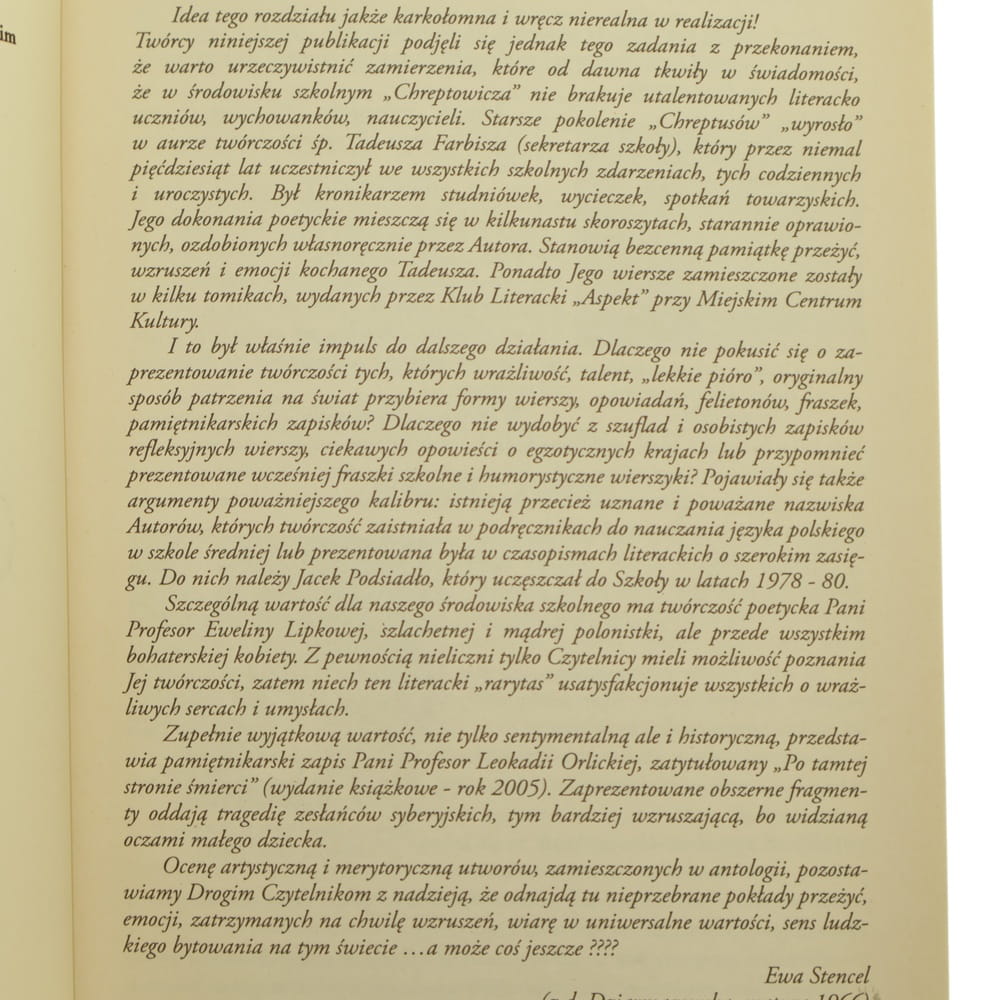 Księga Wspomnień... pięć lat później" myśli i słowa Antologia Twórczość literacka Liceum Joachima Chreptowicza w Ostrowcu Św. przewodn. zespołu red. Ewa Stencel [2008]