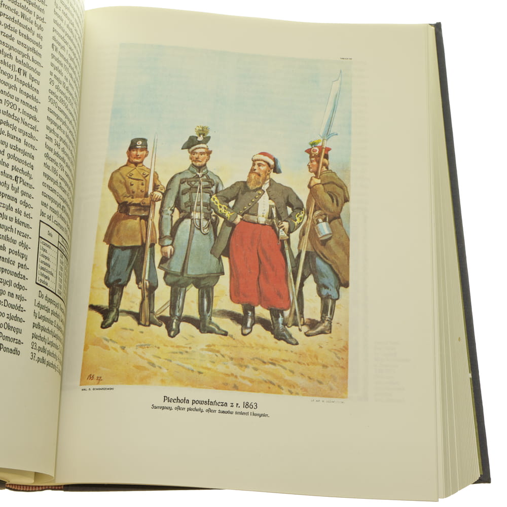 Oryg.: Warszawa 1937-39, Departament Piechoty M. S. Wojsk. / Tablice wg obrazów: M. Byliny, B. Gembarzewskiego, S. Haykowskiego, W. Kossaka, J. Świrysz-Ryszkiewicza i A. Trzeszczkowskiego, litografowane portrety, frontyspis.