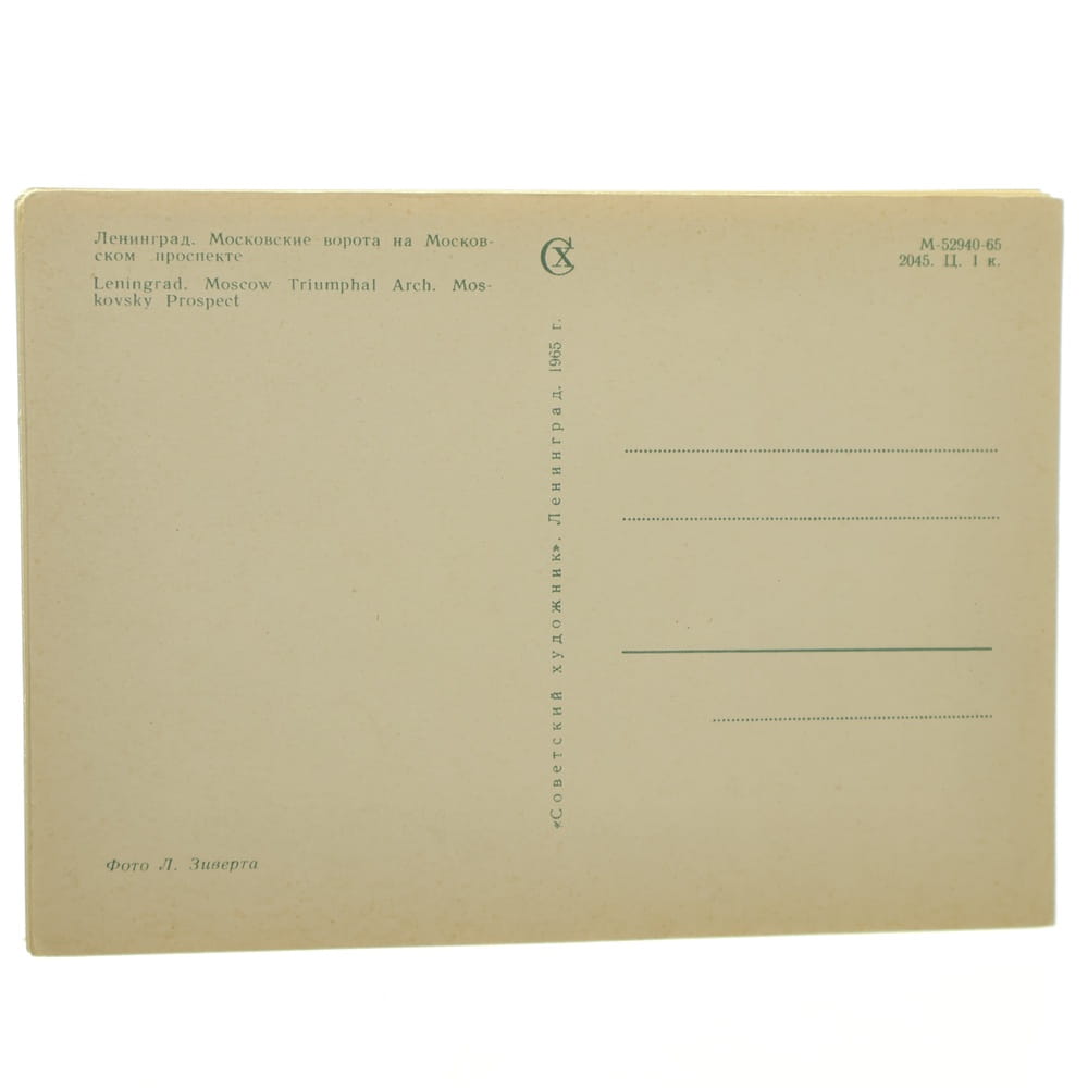 Leningrad [Petersburg] Moscow Triumphal Arch. Moskovsky Prospect [pocztówka / 1965]