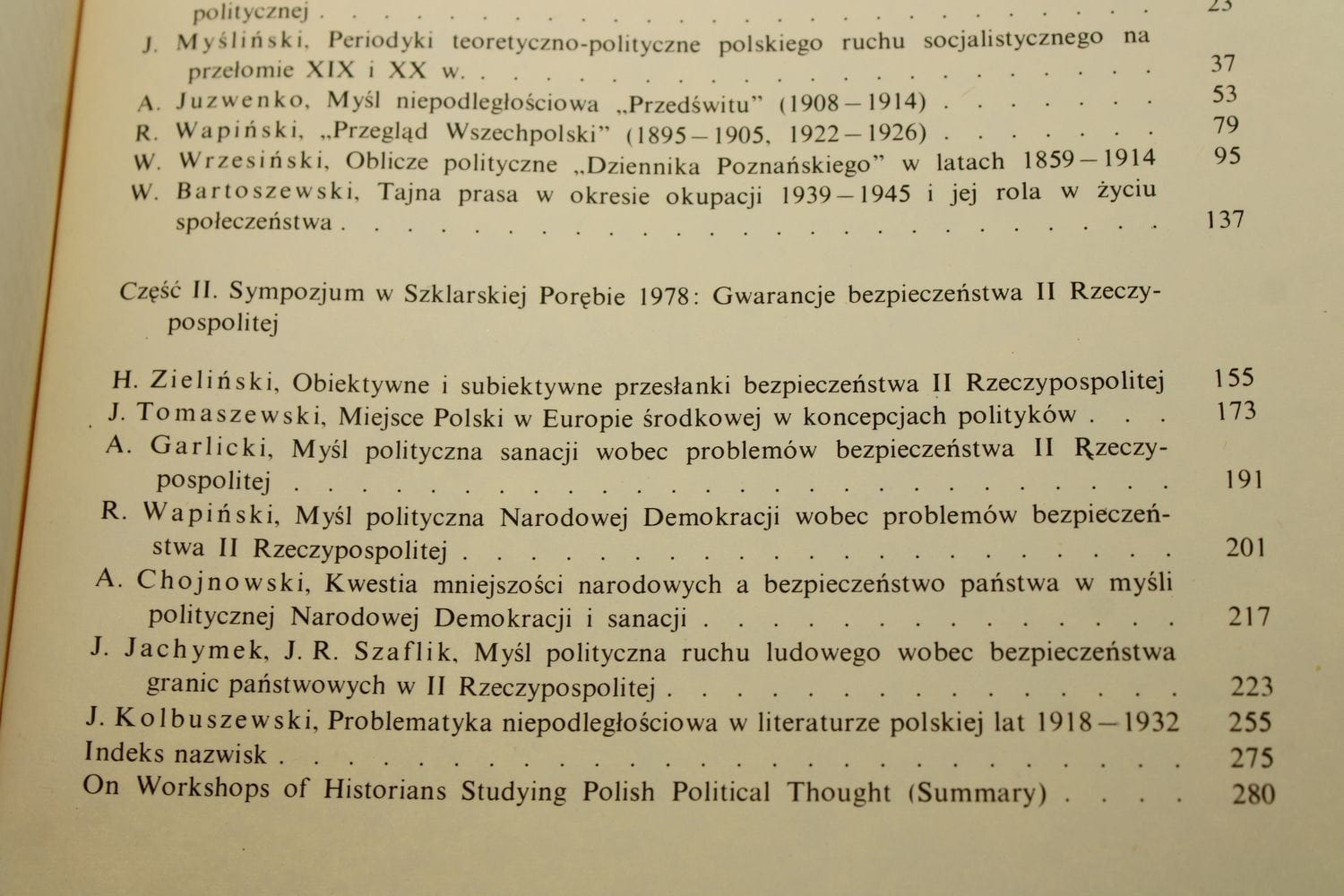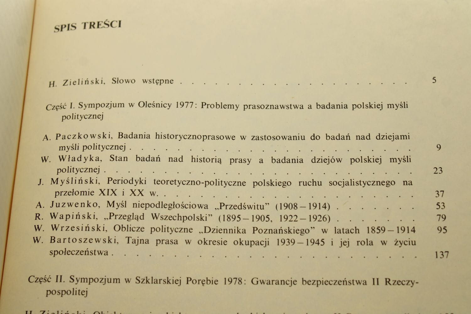 dodatkowe informacje Materiały sympozjów zorg. przez wrocławski zespół badania dziejów polskiej myśli politycznej w Olśnicy w 1977 r. i Szklarskiej Porębie w 1978 r.
