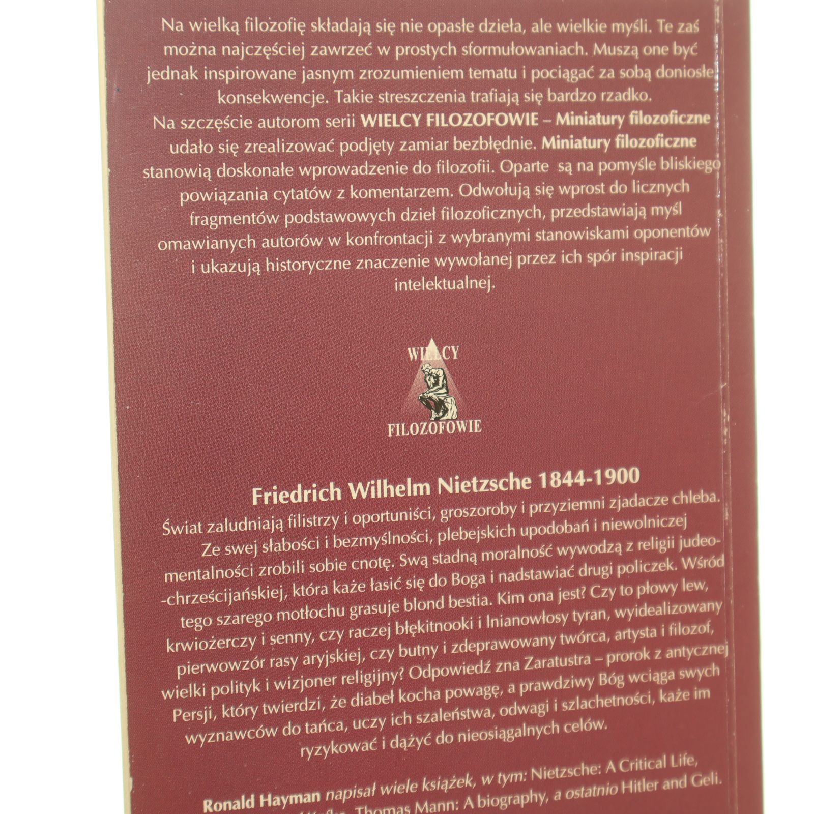 Nietzsche głosy Nitzschego Roland Hayman przekład Jacek Hołówka [Wielcy Filozofowie / 1998]