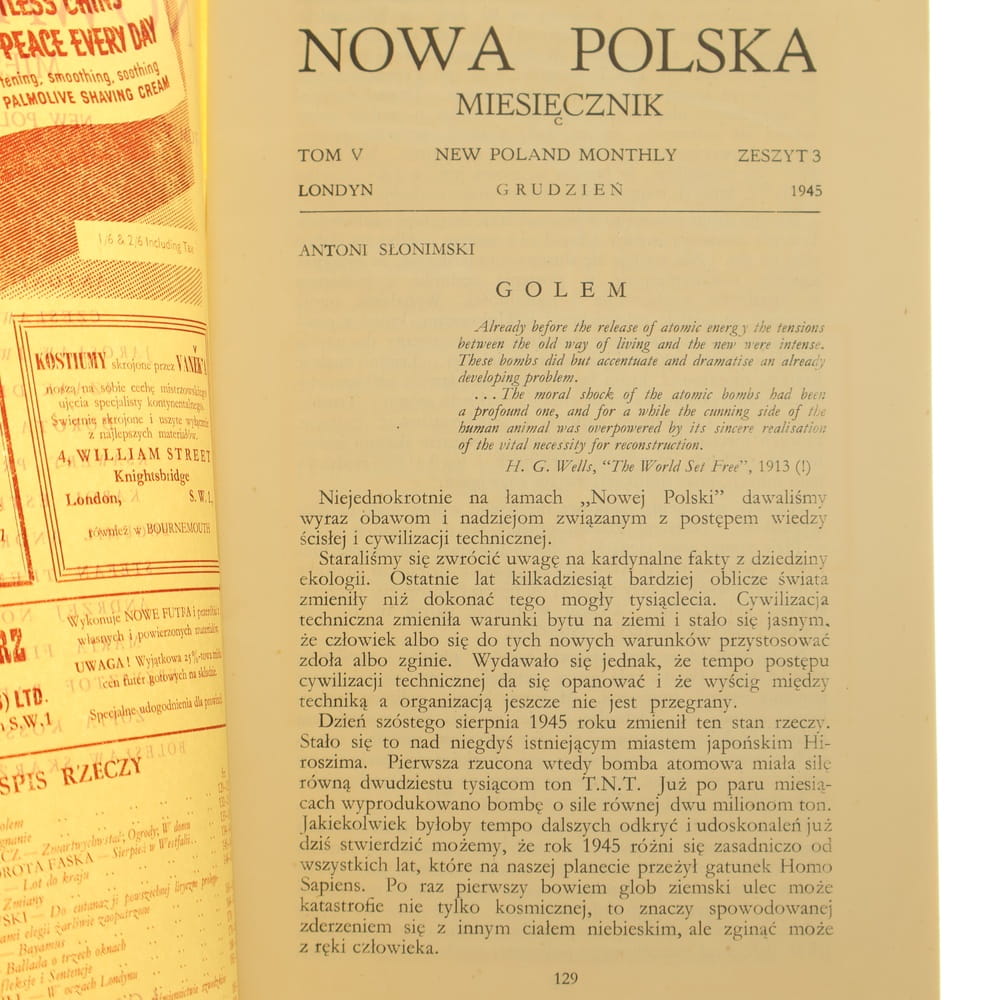 »Nowa Polska Miesięcznik tom V zeszyt 3 grudzień 1945 [Antoni Słonmski, Czesław Miłosz, Jarosław Iwaszkiewicz, Ksawery Pruszyński, Stefan Themerson i inni]