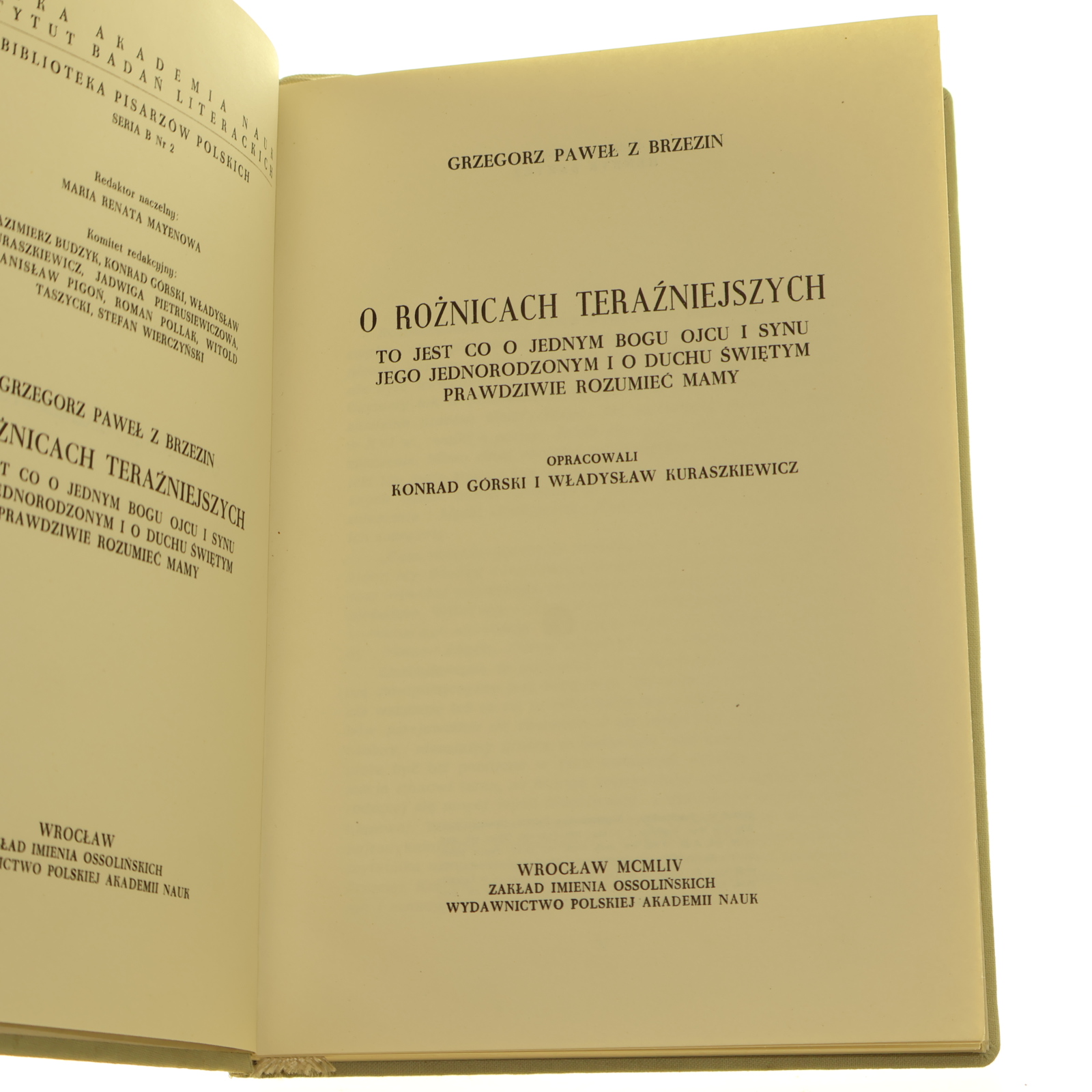 »O rożnicach teraźniejszych to jest Co o jednym Bogu Ojcu i Synu jego jednorodzonym i o Duchu Świętym prawdziwie rozumieć mamy Grzegorz Paweł z Brzezin oprac. Konrad Górski oprac. Władysław Kuraszkiewicz [1954]
