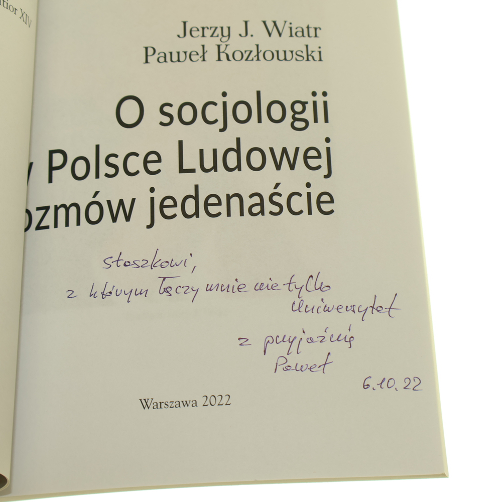 O socjologii w Polsce Ludowej rozmów jedenaście Jerzy J. Wiatr, Paweł Kozłowski [AUTOGRAF] [Fontes Rerum ad Historiam Scientiae Spectantium / 2022]
