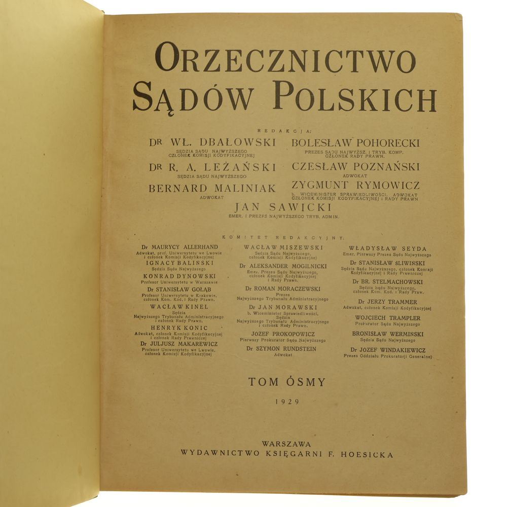 Orzecznictwo Sądów Polskich t. VIII red. Wł. Dbałowski, R. A. Leżeński, B. Maliniak, B. Pohorecki, Cz. Poznański, Z. Rymowicz, J. Sawicki [1929]