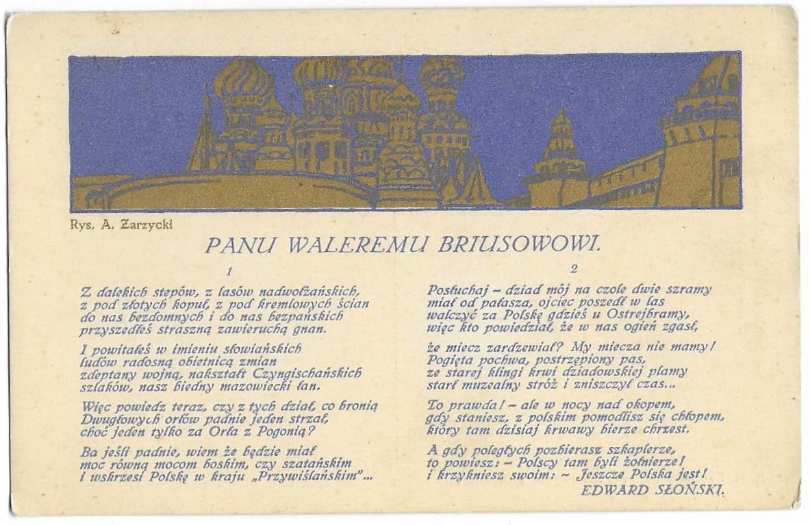 Panu Waleremu Briusowi Edward Słoński rys. A. Zarzycki [pocztówka patriotyczna / ca 1915]