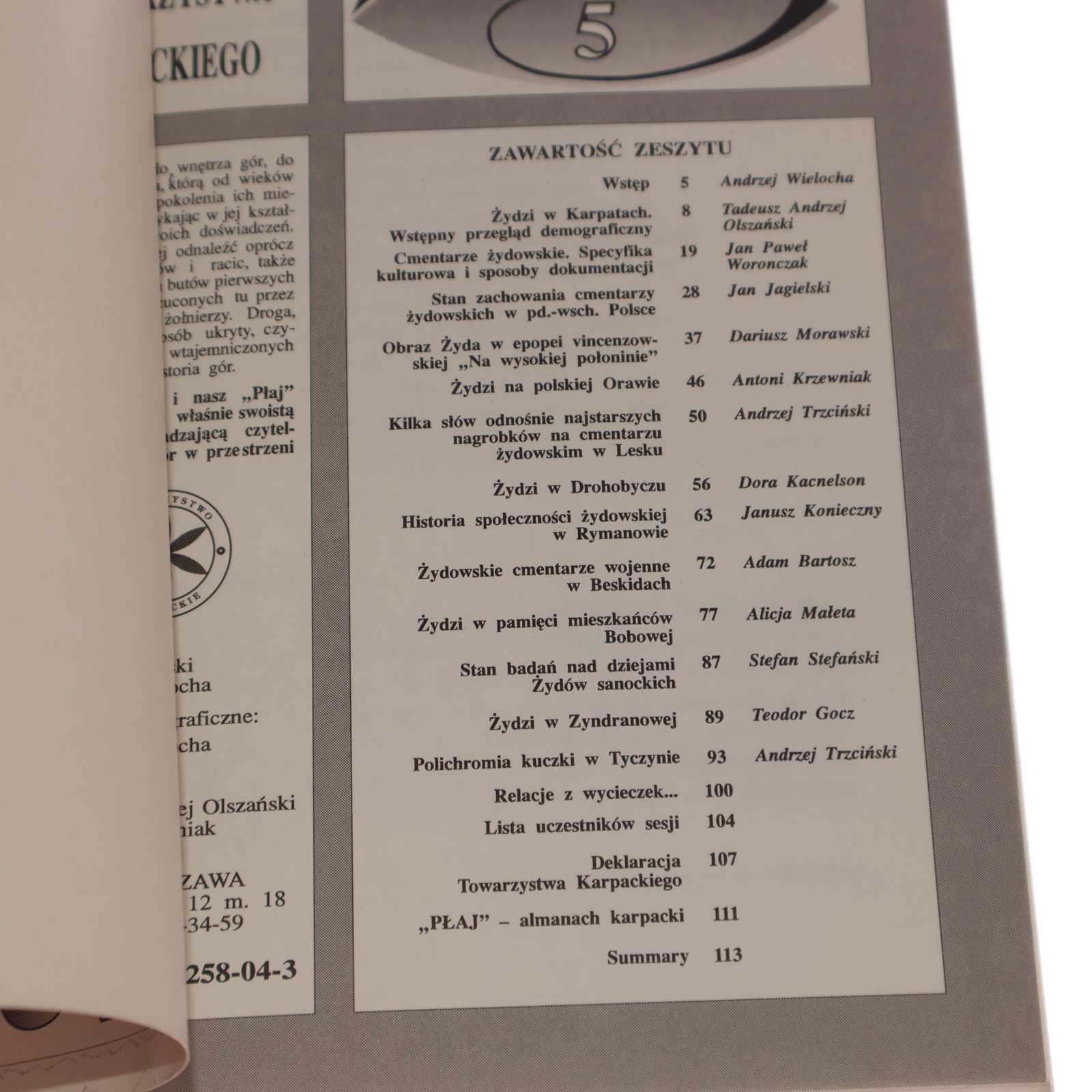 Płaj Almanach Karpacki Półrocznik Towarzystwa Karpackiego 5/1991