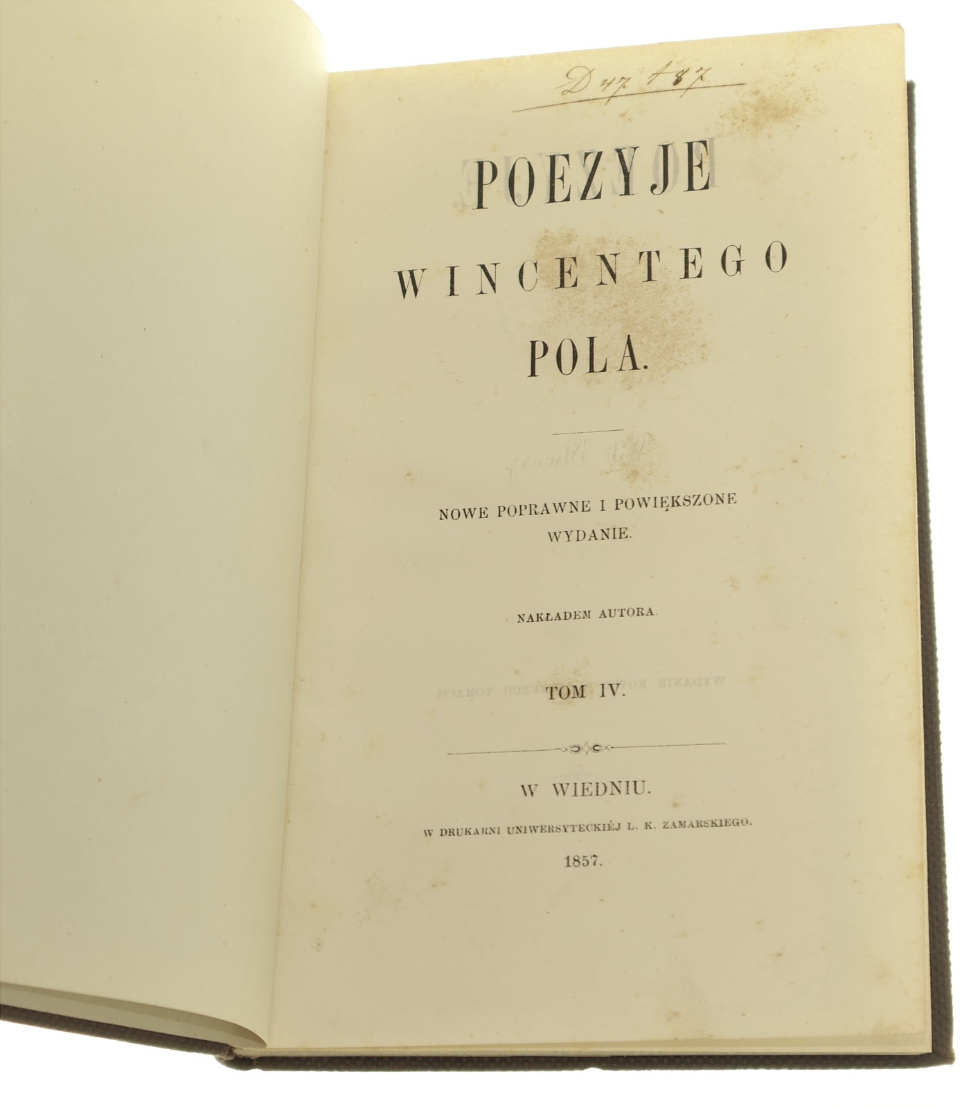 tytuł Poezyje Wincentego Pola t. IV Wit Stwosz