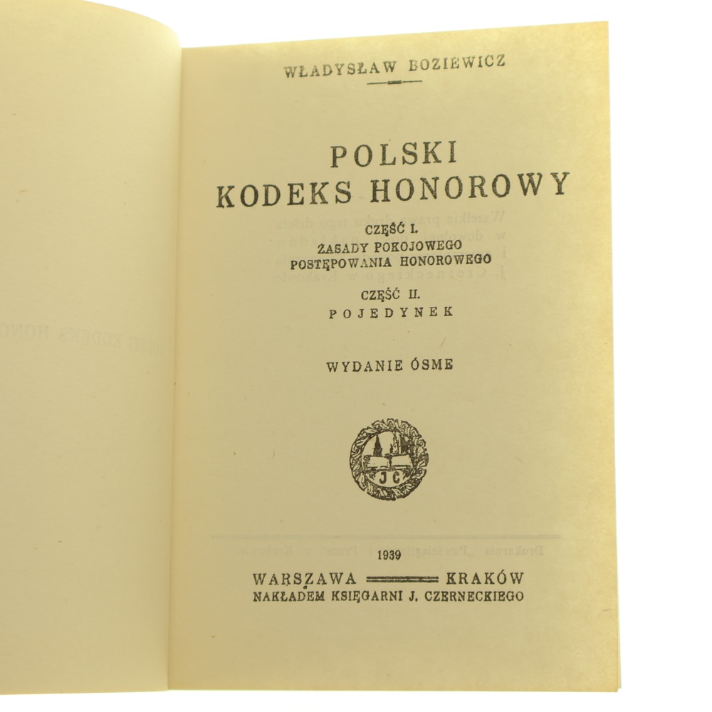 Polski kodeks honorowy Cz. 1 Zasady pokojowego postępowania honorowego Cz. 2 Pojedynek Władysław Boziewicz [1939-reprint-1990]