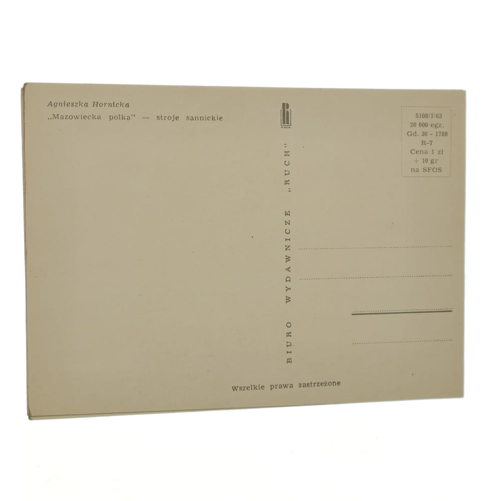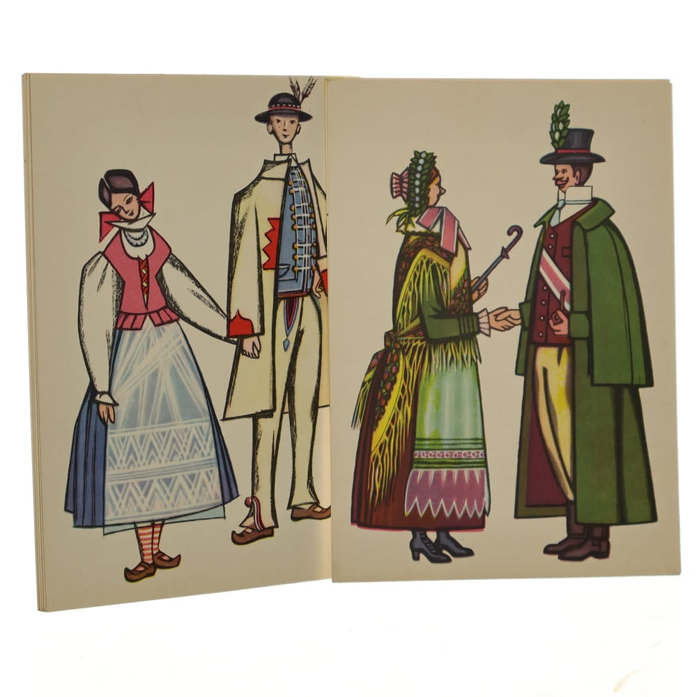 Polskie stroje ludowe [bloczek pocztówek] proj. Agnieszka Hornicka [pocztówki / lata 60.]