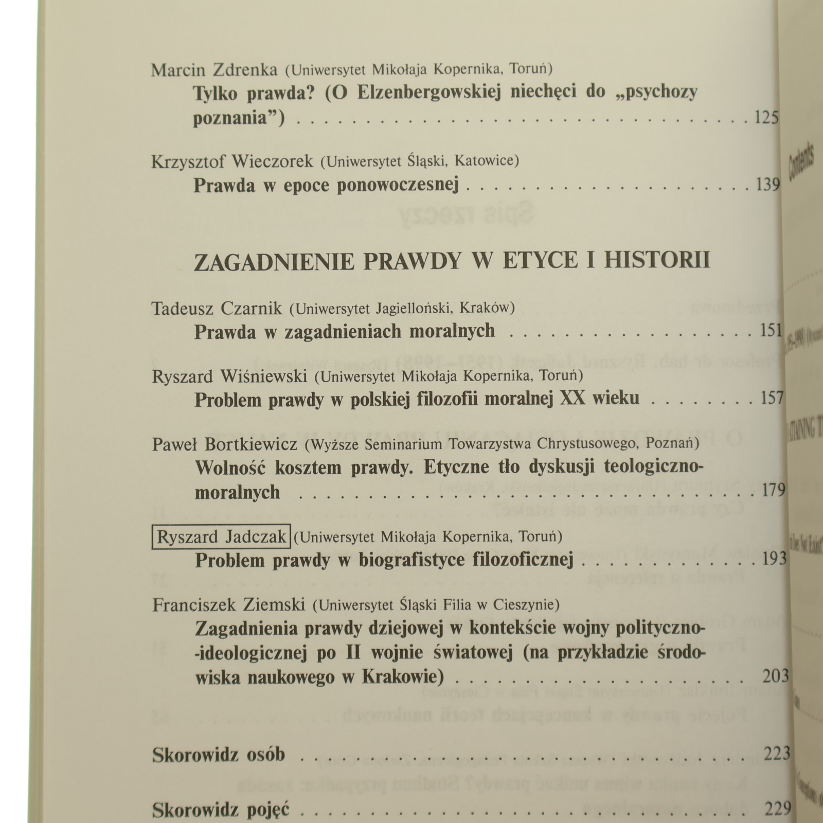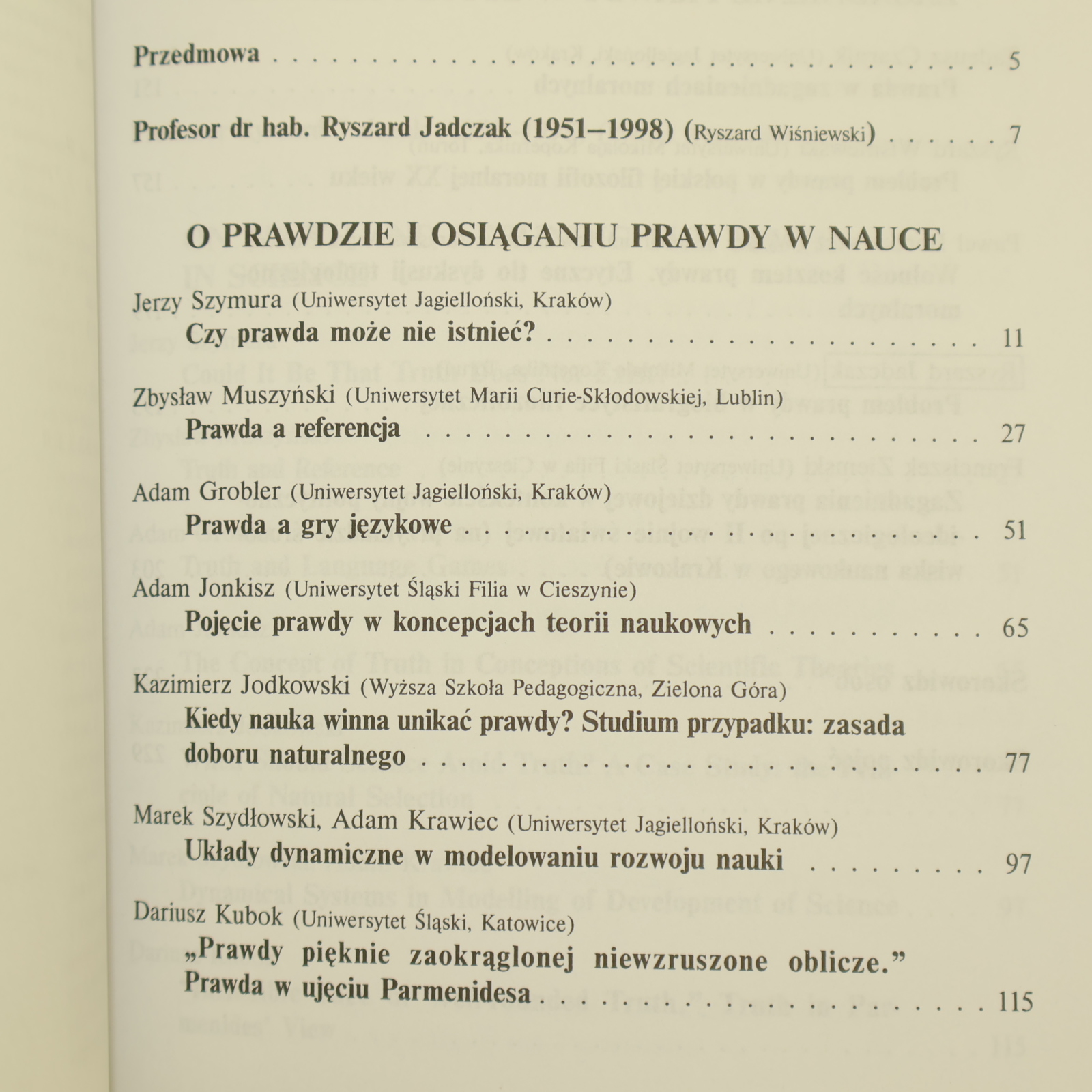 Tom ten jest poświęcony pamięci przedwcześnie zmarłego Profesora Ryszarda Jadczaka. Obrady konferencji w Cieszynie, a także zainicjowane przez niego wykłady im. Kazimierza Twardowskiego (Filia Uniwersytetu Śląskiego w Cieszynie, 5–7 maja 1998) były jednymi z ostatnich spotkań naukowych, w jakich uczestniczył.