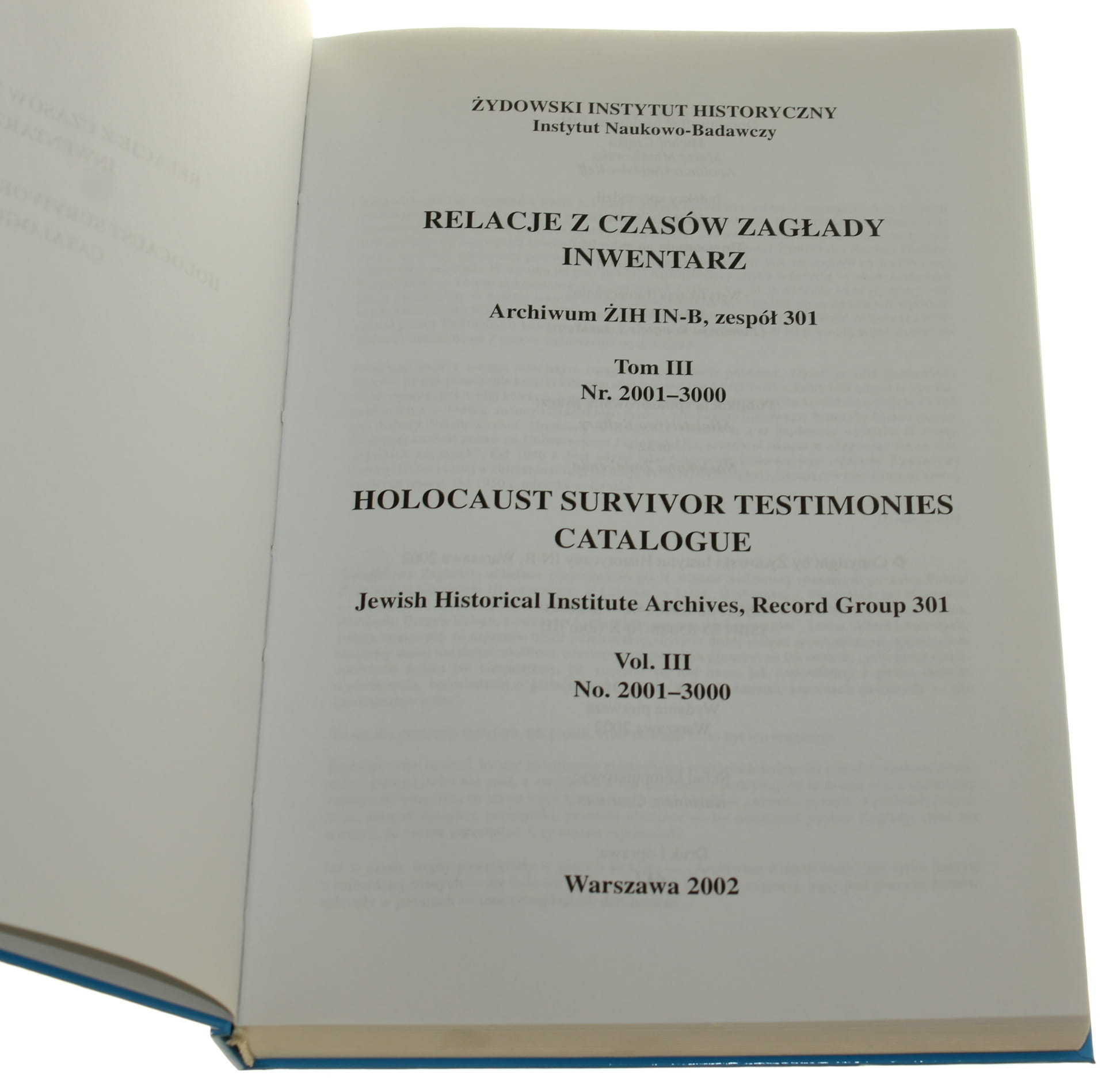 Relacje z Zagłady. Inwentarz t. III Archiwum ZiH IN-B, zespół 301 oprac. Michał Czajka, Marta Młodkowska, Apolonia Umińska-Keff [2002]