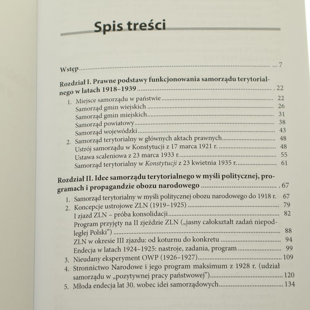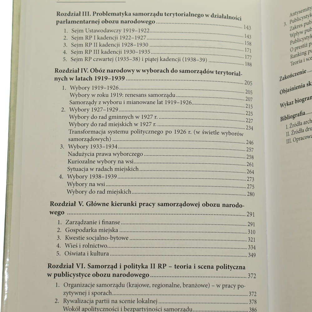 tytuł Samorząd terytorialny w działalności obozu narodowego w Rzeczypospolitej Polskiej w latach 1918-1939