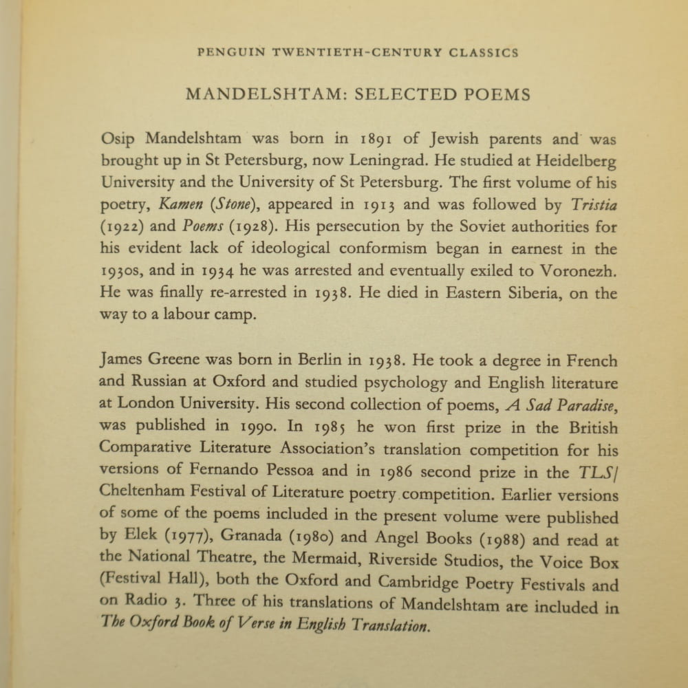 redakcja selected and translated by James Green / foreword by Nadezhda Mandelshtam and Donald Davie / introduction by Donald Rayfield