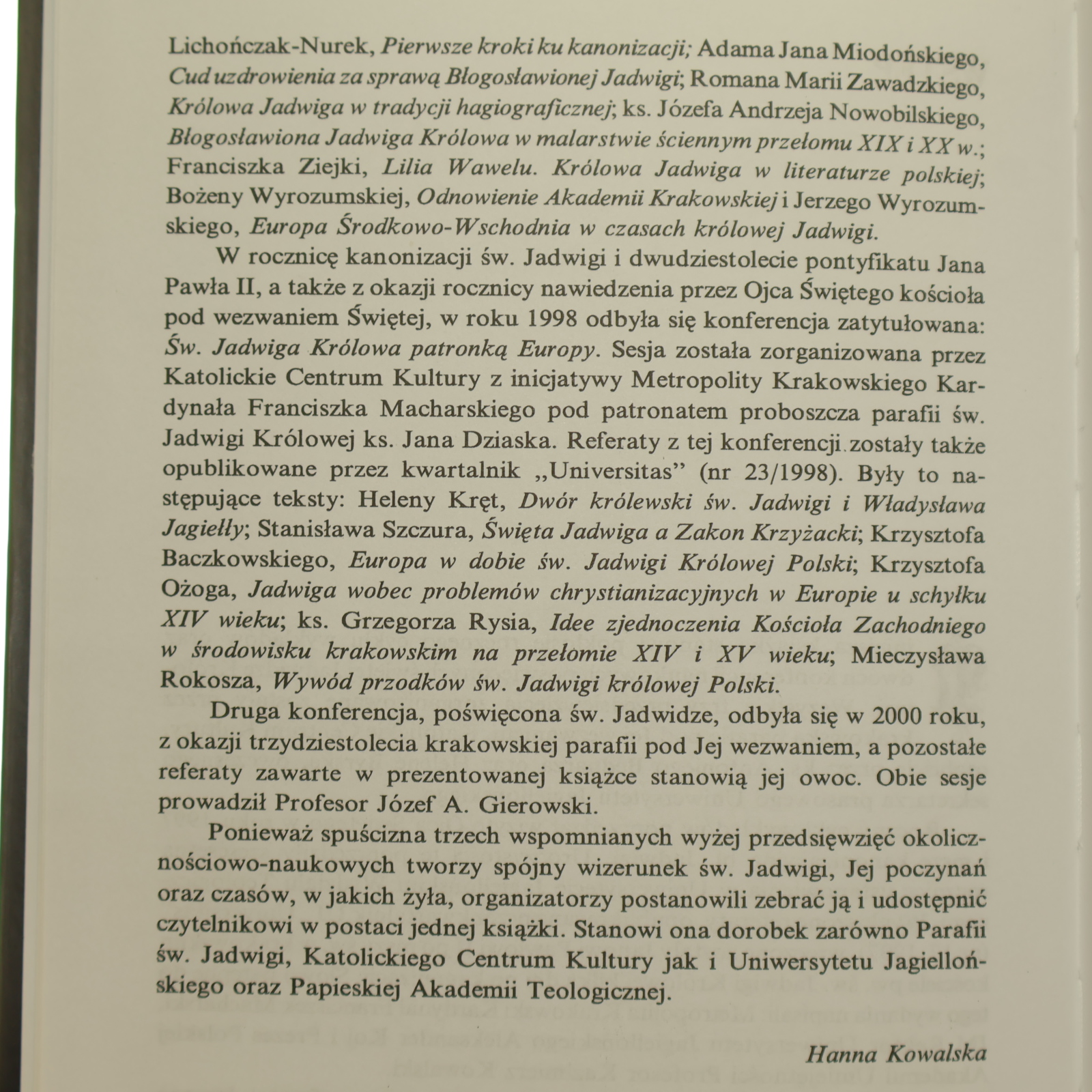 Święta Jadwiga królowa dziedzictwo i zadania na trzecie tysiąclecie [redakcja Hanna Kowalska, Helena Byrska, ks. Antoni Bednarz] [2002]