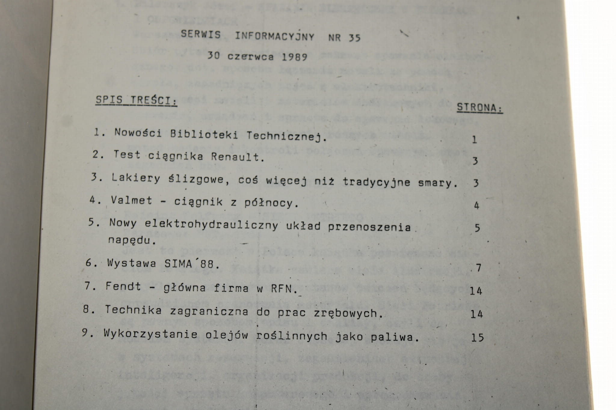 »Ursus Serwis Informacyjny nr 35 30 czerwca 1989 Zrzeszenie Przemysłu Ciągnikowego Ursus [BOiNTE Branżowy Ośrodek Informacji Naukowej Technicznej i Ekonomicznej]