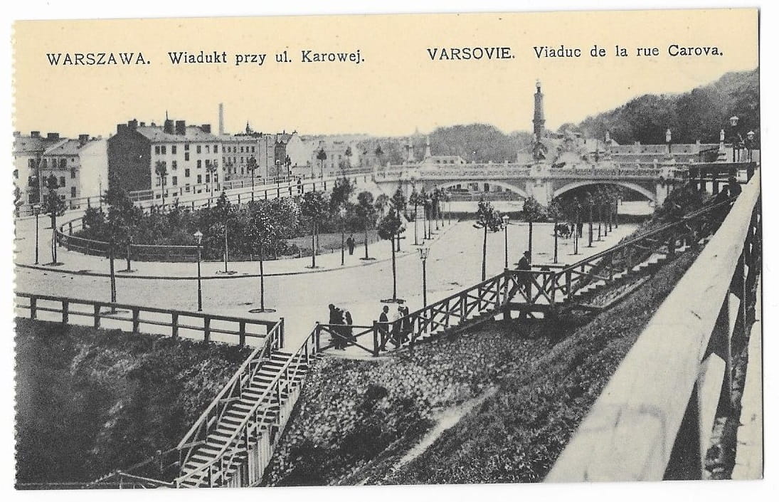 Wiadukt przy ulicy Karowej [Karowa] Warszawa Chlebowski i S-ka [pocztówka, ca 1910]