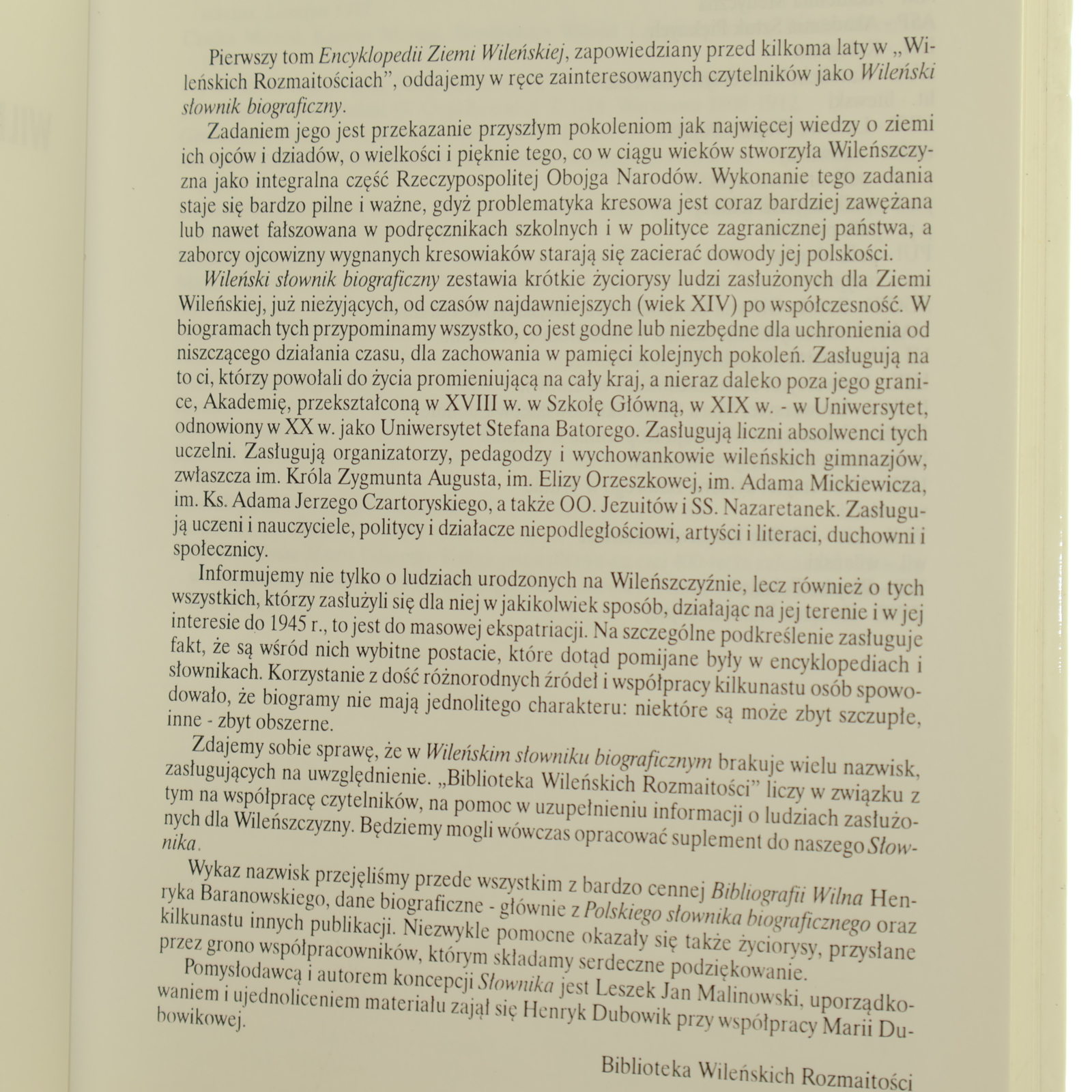 Wileński słownik biograficzny red. Henryk Dubowik, Leszek Jan Malinowski [współpr. Andruszkiewicz Janusz et al.] [2002]