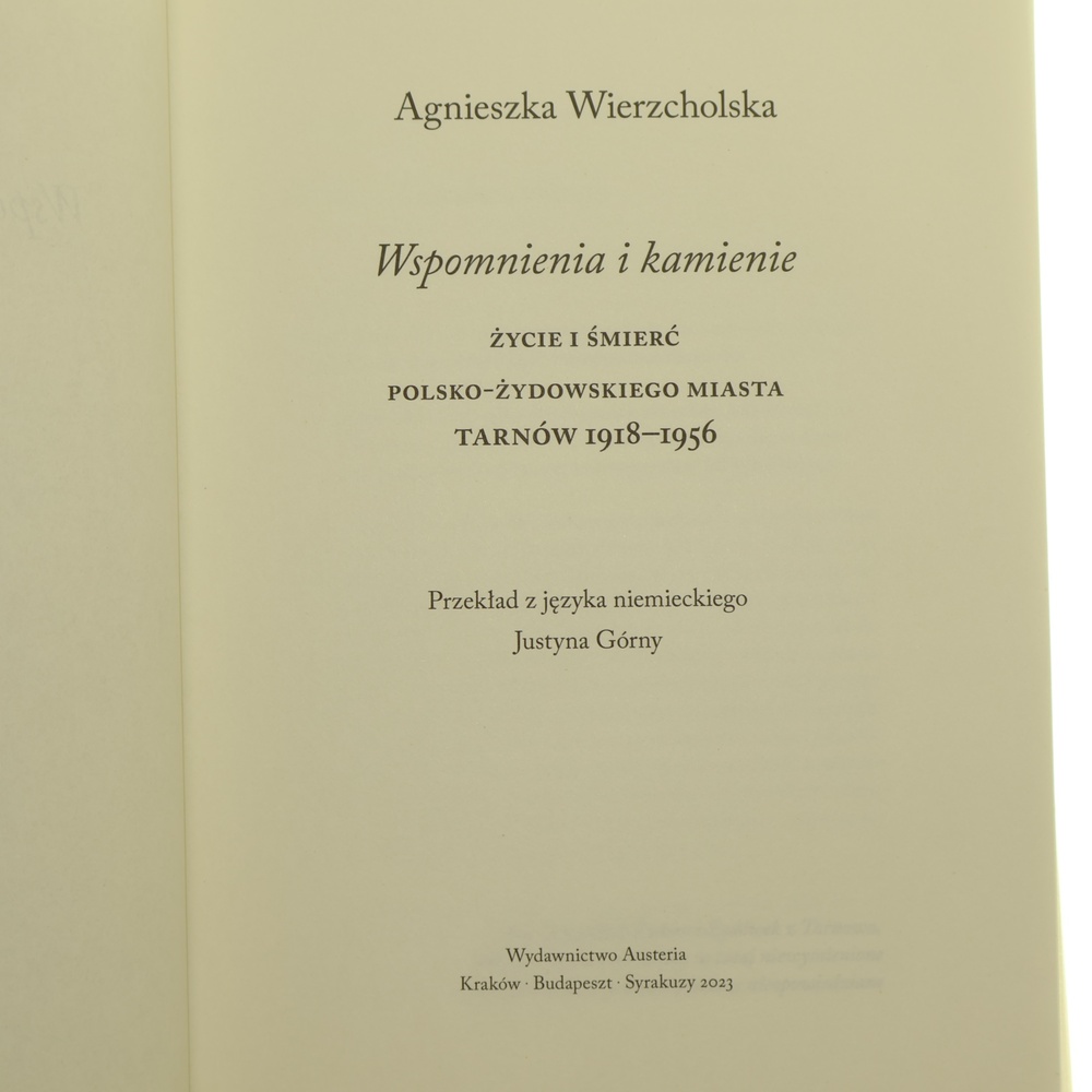 Wspomnienia i kamienie życie i śmierć polsko-żydowskiego miasta Tarnów 1918-1956 Agnieszka Wierzcholska przekład z języka niemieckiego Justyna Górny [2023]