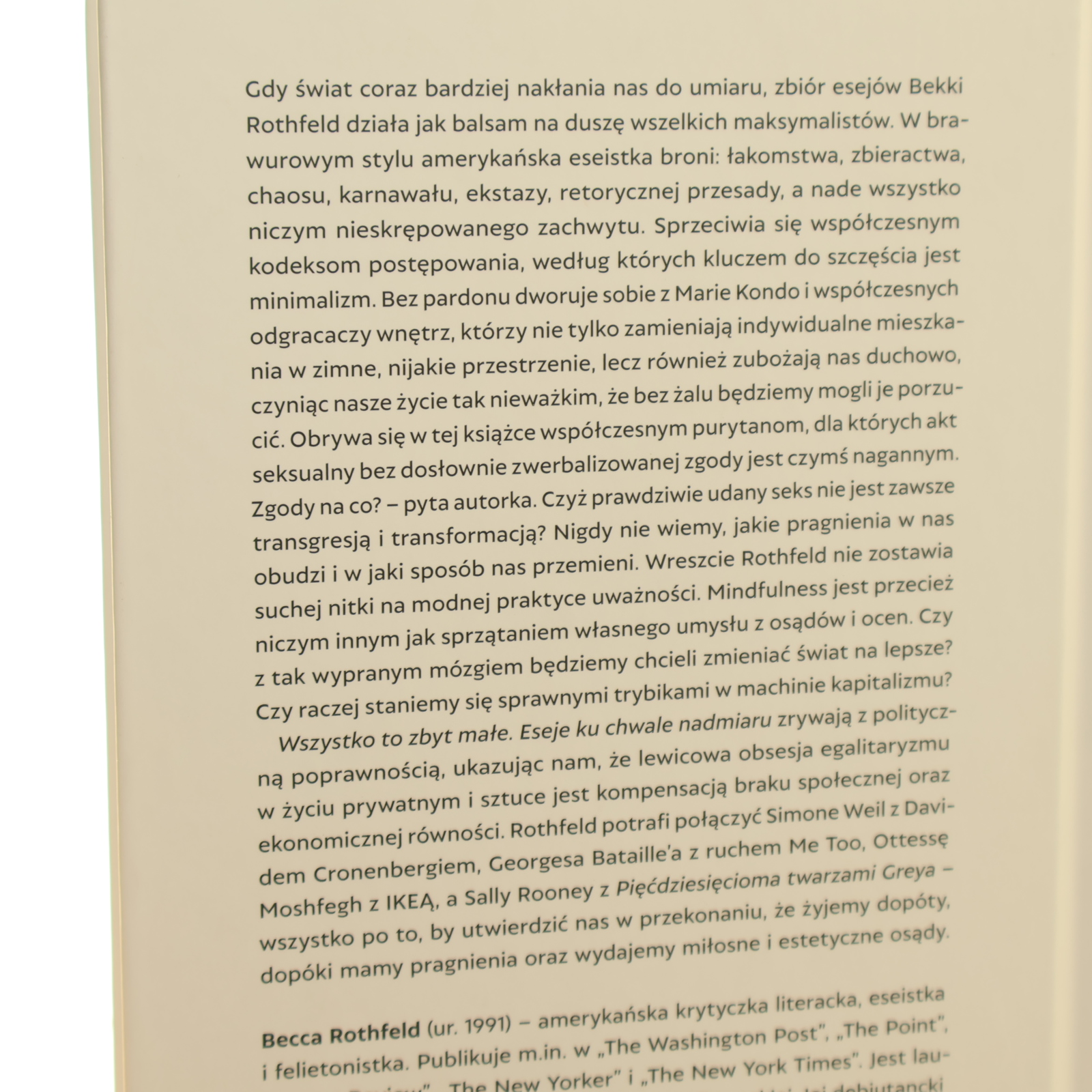 Wszystko to zbyt małe eseje ku chwale nadmiaru Becca Rothfeld przełożył Piotr Siemion [2025]