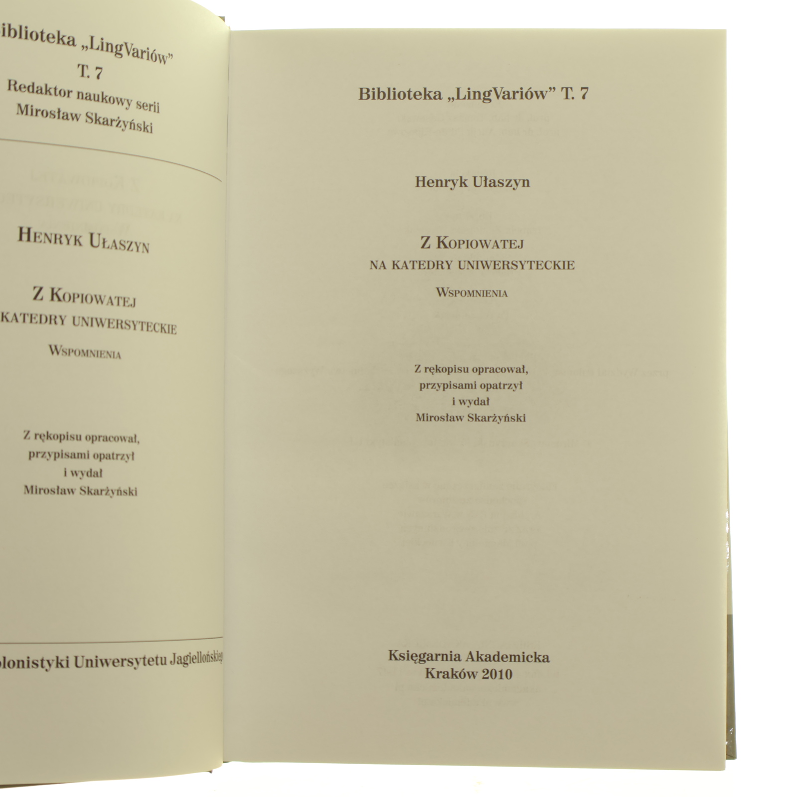 Z Kopiowatej na katedry uniwersyteckie wspomnienia Henryk Ułaszyn z rękopisu opracował, przypisami opatrzył i wydał Mirosław Skarżyński [2010]
