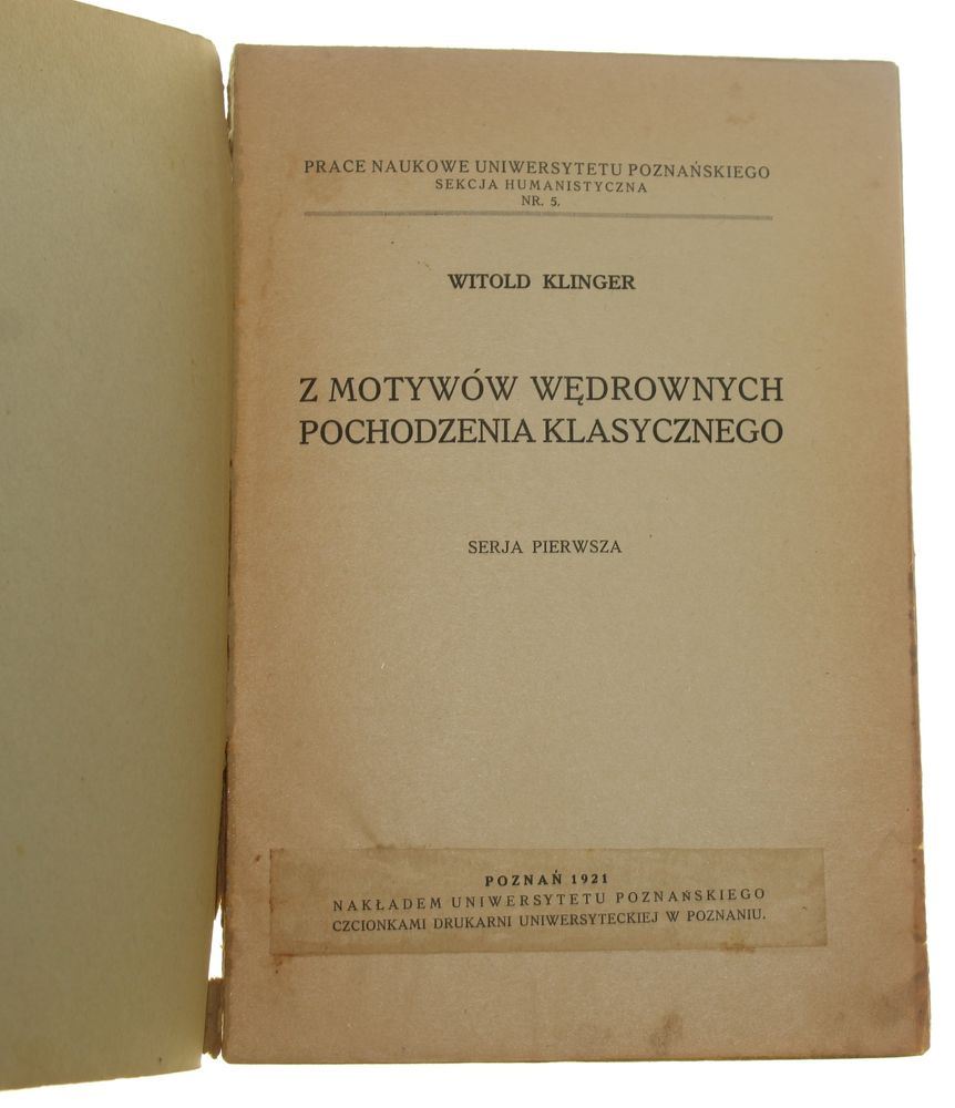 Z motywów wędrownych pochodzenia klasycznego Serja pierwsza Witold Klinger (Prace Naukowe Uniwersytetu Poznańskiego. Sekcja Humanistyczna) (1921)