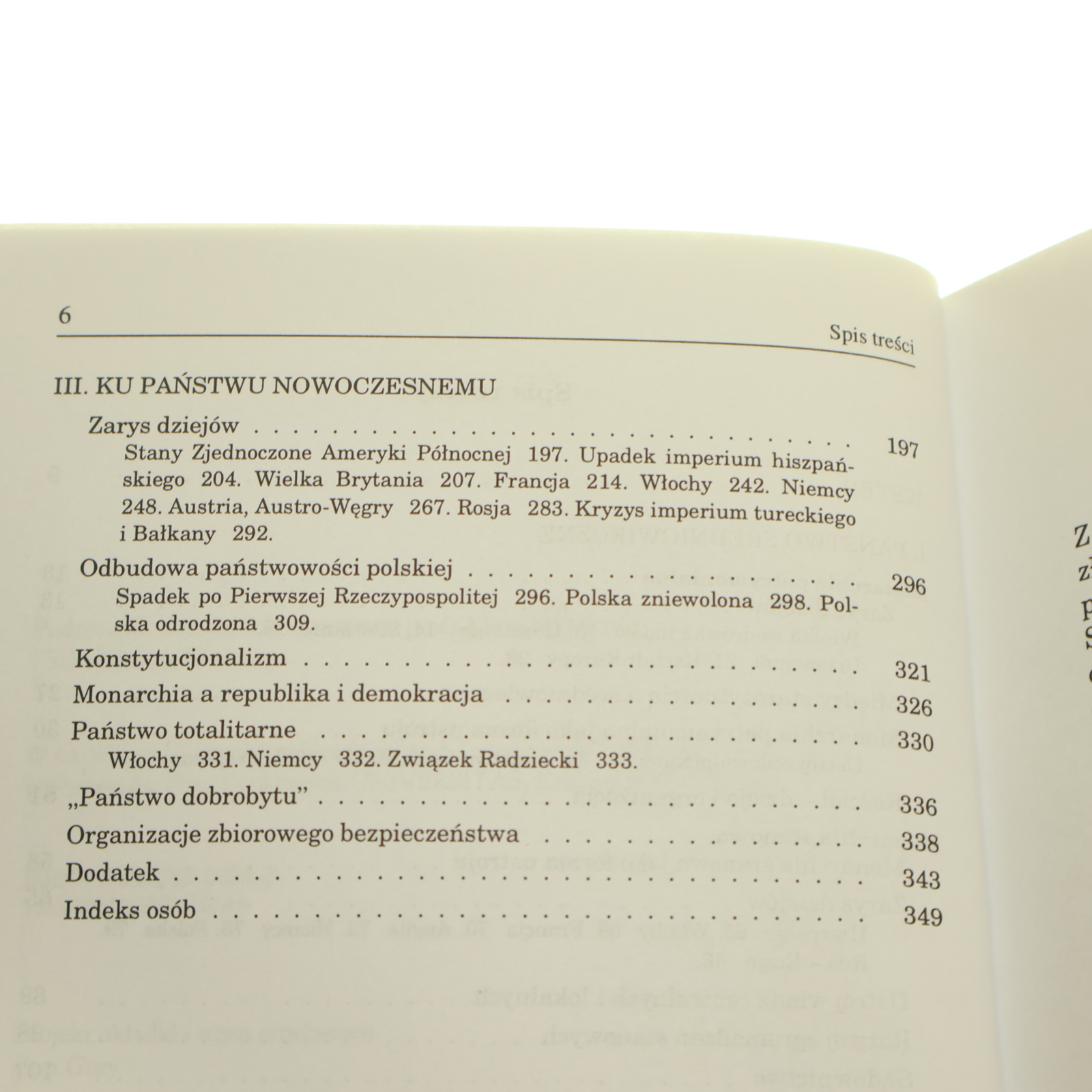 Zarys dziejów 197 Stany Zjednoczone Ameryki Północnej 197. Upadek imperium hiszpańskiego 204. Wielka Brytania 207. Francja 214. Włochy 242. Niemcy 248. Austria, Austro-Węgry 267. Rosja 283. Kryzys imperium tureckiego i Bałkany 292. Odbudowa państwowości polskiej 296 Spadek po Pierwszej Rzeczypospolitej 296. Polska zniewolona 298. Pol-ska odrodzona 309. Konstytucjonalizm 321 Monarchia a republika i demokracja 326 Państwo totalitarne 330 Włochy 331. Niemcy 332. Związek Radziecki 333. „Państwo dobrobytu" 336 Organizacje zbiorowego bezpieczeństwa 338