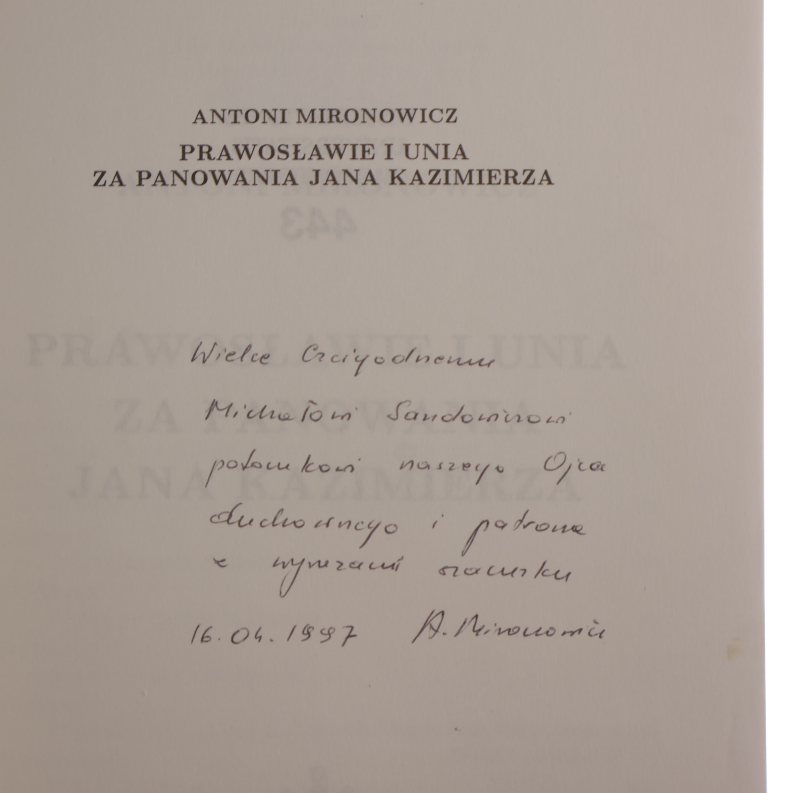 Prawosławie i unia za panowania Jana Kazimierza Mironowicz Antoni [Disserationes Universitates Varsoviensis] [AUTOGRAF] (1997)