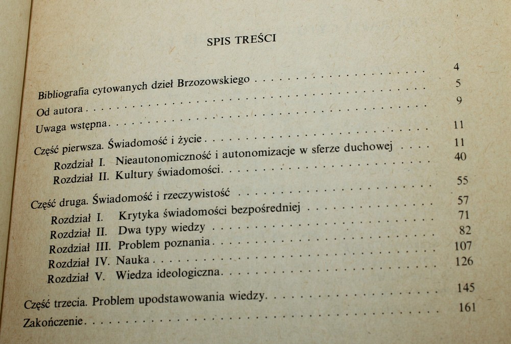 TREŚĆ [działy]: Bibliografia cytowanych dzieł autora / Świadomość i życie / Świadomość i rzeczywistość / Problem upodstawowania wiedzy