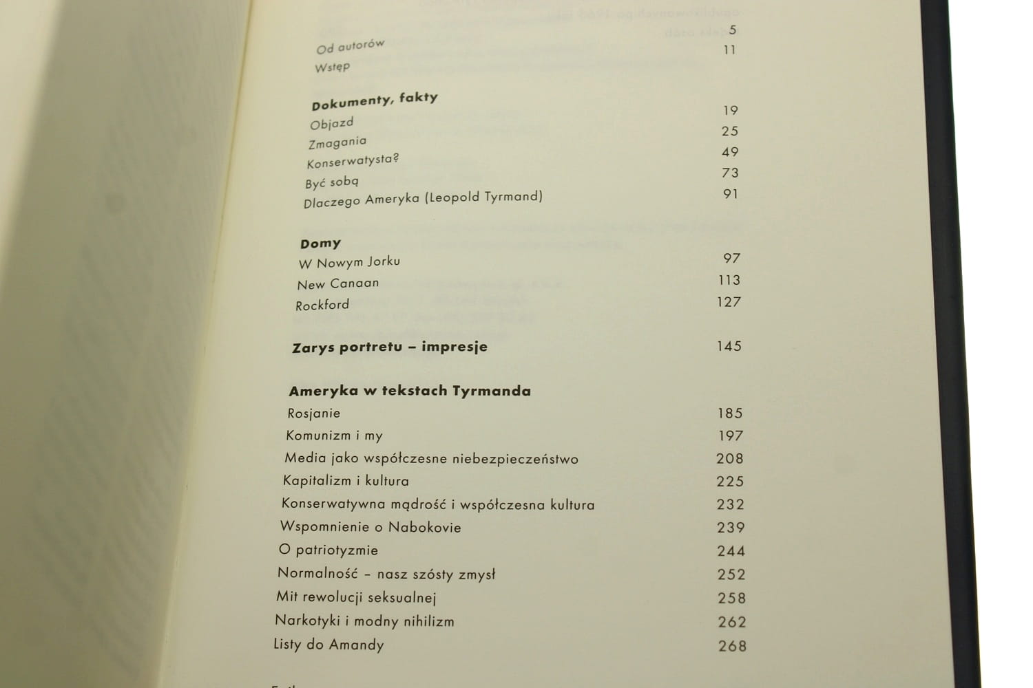 dodatkowe informacje [c. d.] Spis rzeczy [działy]: Dokumenty, fakty Domy Zarys portretu - impresje Ameryka w tekstach Tyrmanda [epilog]