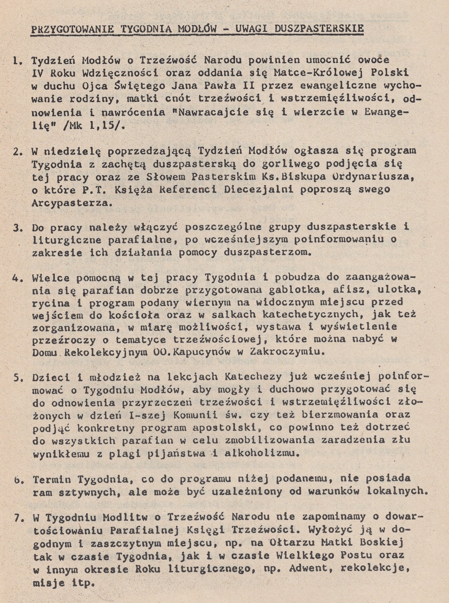 XIII tydzień modłów o trzeźwość narodu [Od środy popielcowej do wtorku i niedzieli W. Postu w dniach 20-26 lutego 1980 roku]